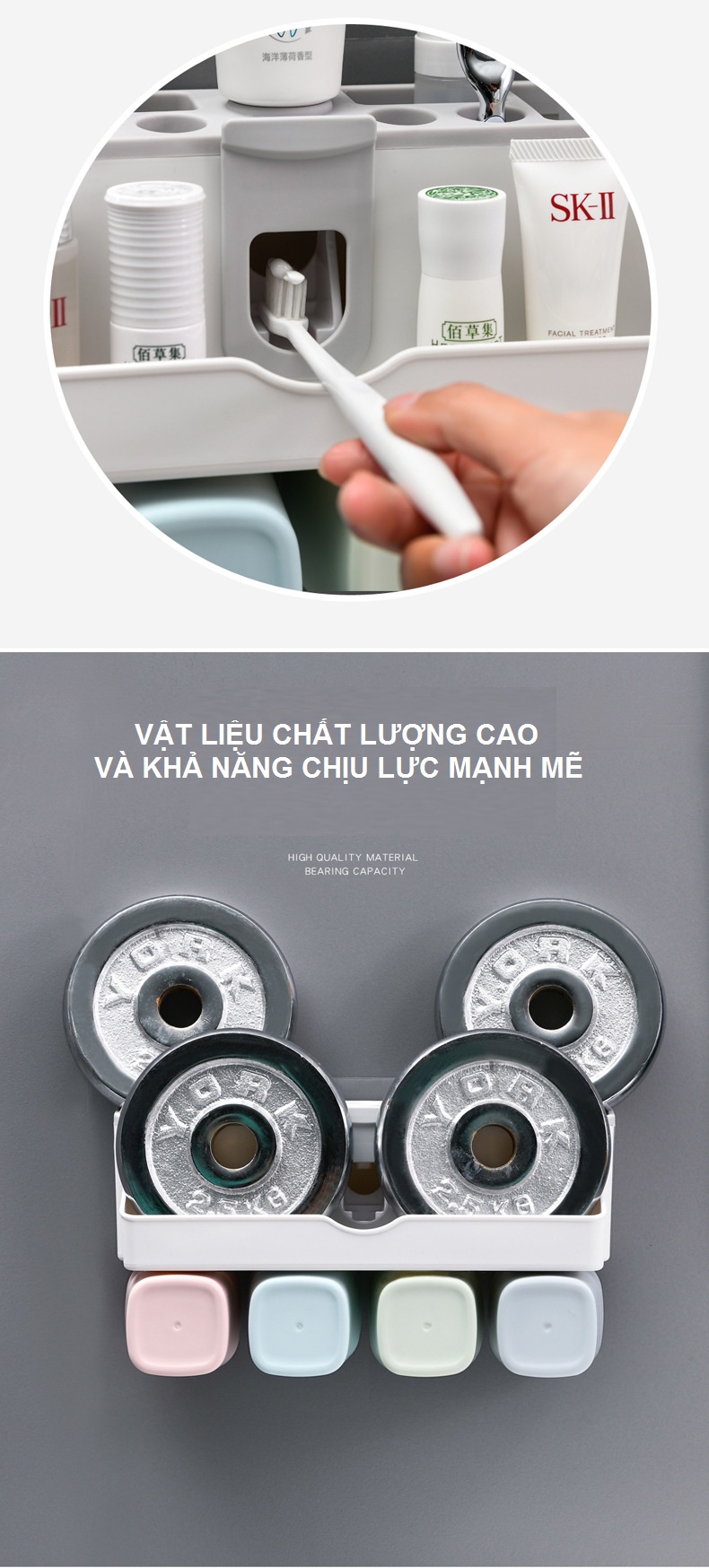 Hộp đựng kem đánh răng tự động kèm 4 ly chắc chắn, sang trọng và tiết kiệm không gian trong nhà tắm của bạn.