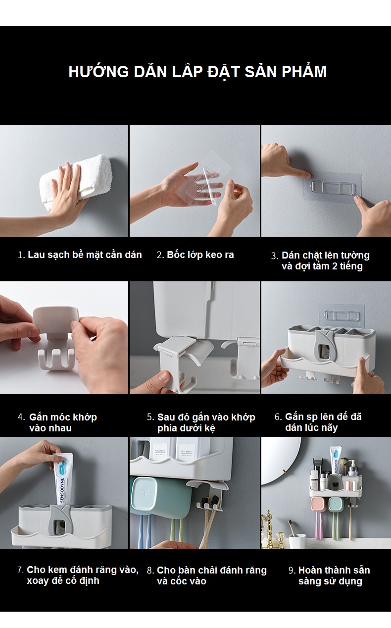Thông tin chi tiết sản phẩm: Giá Treo Bàn Chải Đánh Răng, Lấy Kem Đánh Răng Tự Động, Lưu Trữ Vật Dụng Ngăn Nắp - Tặng Kèm 4 Cốc Và Miếng Dán Tường