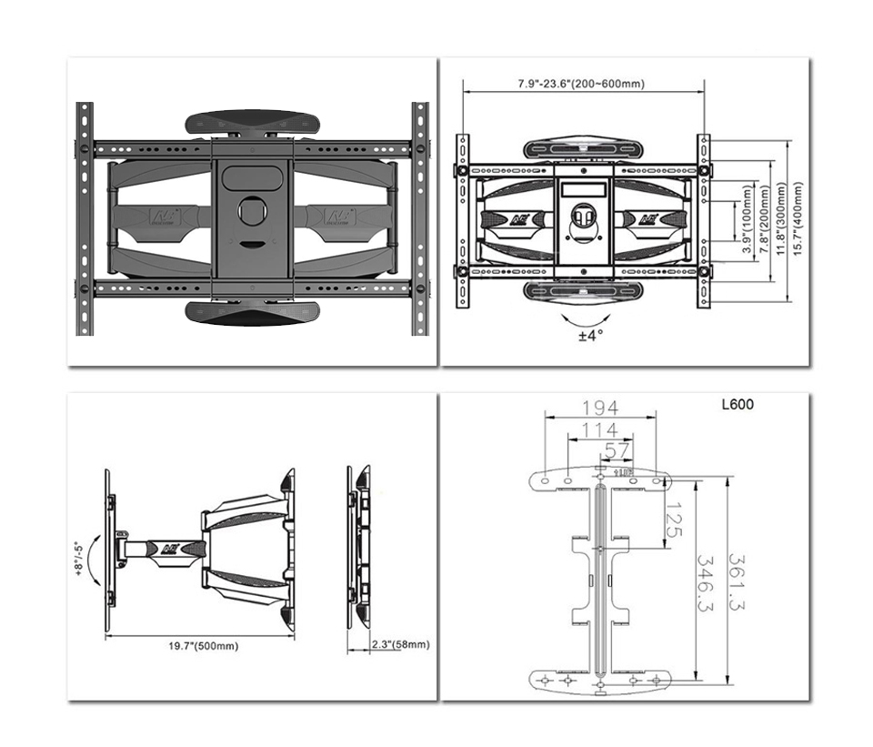 - Với giá treo hoàn toàn động này, bạn hoàn toàn có thể nghiêng, xoay, mở rộng, gập TV một cách dễ dàng. Thiết kế này cũng làm cho TV áp sát tường hơn, chỉ cách khoảng 57mm, đảm bảo tính thẩm mỹ, tiết kiệm không gian cho ngôi nhà và văn phòng của bạn...