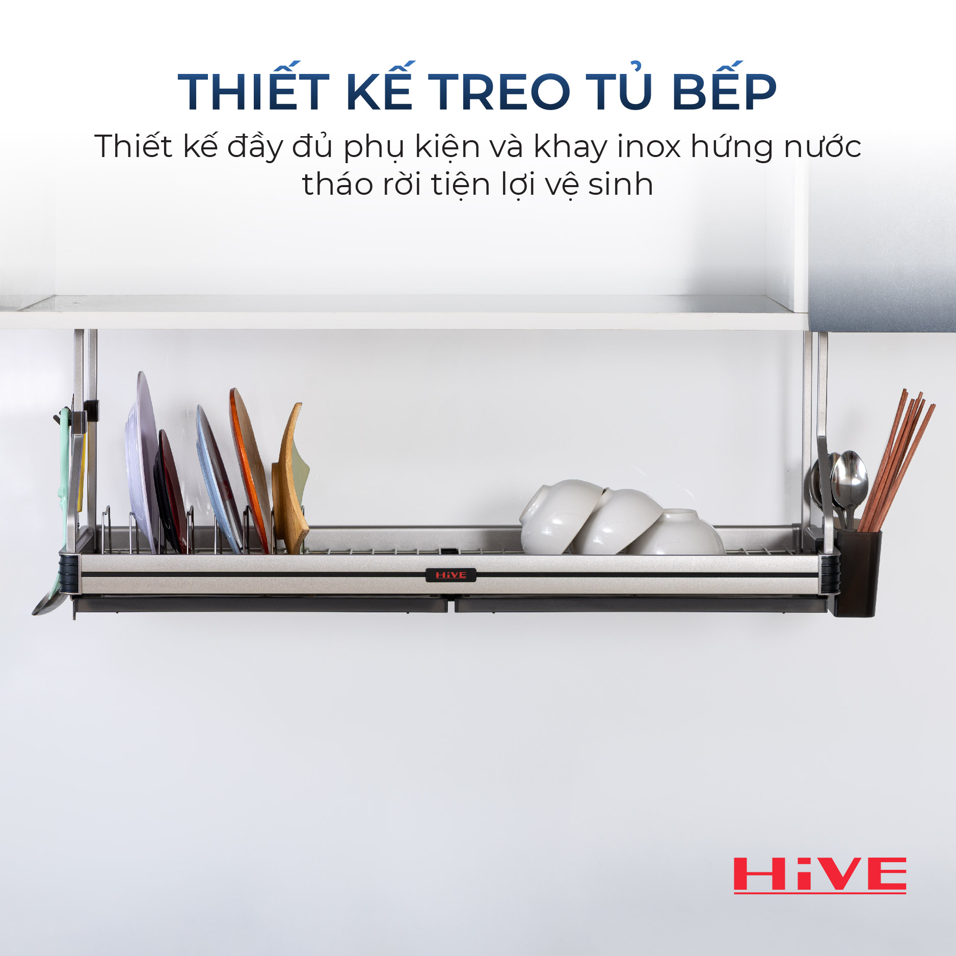 THÔNG SỐ KỸ THUẬT Giá úp chén bát treo tủ bếp trên Premium Black Hive Hàn Quốc KÍCH THƯỚC SẢN PHẨM (DXRXC): 600: Dài 60cm x Rộng 27cm x cao 27cm 800: Dài 80cm x Rộng 27cm x cao 27cm 900: Dài 90cm x Rộng 27cm x Cao 27cm