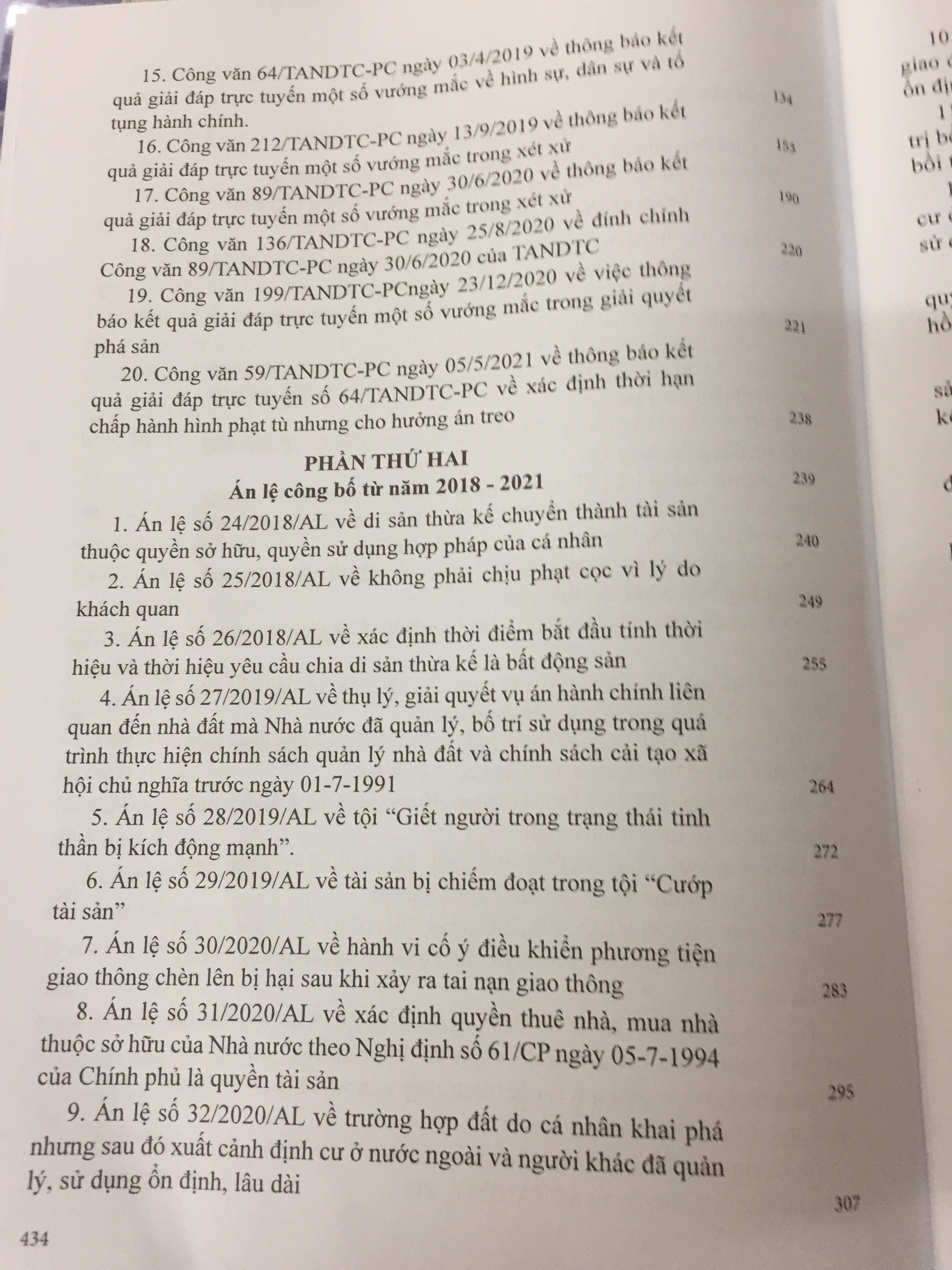 Phần thứ hai: Các Án lệ được công bố năm 2018 - 2021.