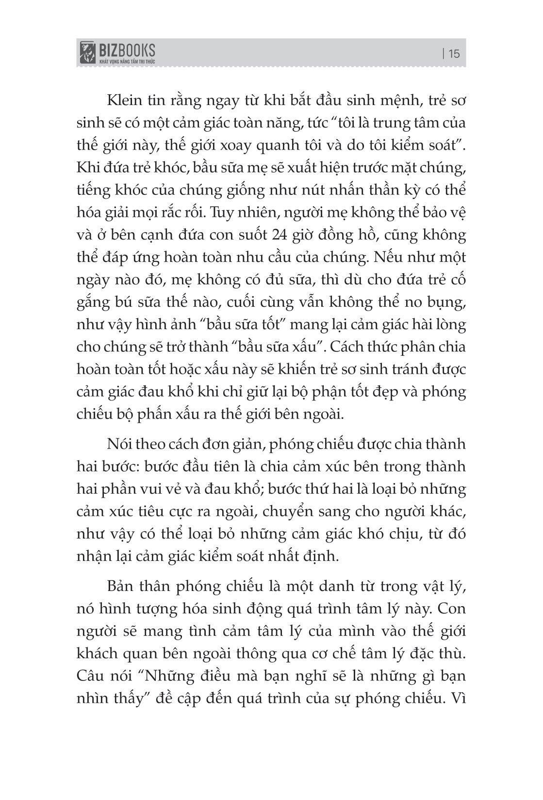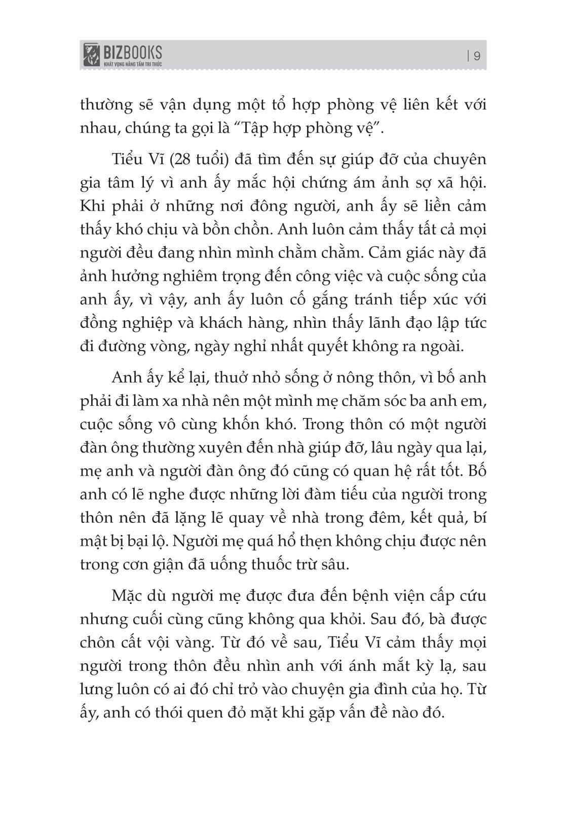 Hầu hết những khó khăn về cảm xúc đều phát sinh từ sự kết hợp giữa khả năng phòng vệ và cảm xúc có vấn đề. Đôi khi, chúng ta sẽ bận tâm những chuyện nhỏ nhặt, dễ đi vào ngõ cụt và điều này sẽ thu hẹp nhận thức của chúng ta vì lúc này, chúng ta thường chỉ thấy một phần kết cục. Cuốn sách Giải mã cơ chế phòng vệ tâm lý con người sẽ giúp bạn thoát ra khỏi cảm xúc này và nhìn nhận lại tổng thể, cùng với đó là tìm được những nguồn lực của riêng m.ình và hướng sự chú ý của bạn vào những gì bạn sẽ làm để giải quyết mọi vấn đề. Khi đó, bạn sẽ thấy rằng mọi chuyện không tệ như bạn nghĩ và mọi việc đều có tính hai mặt của nó.