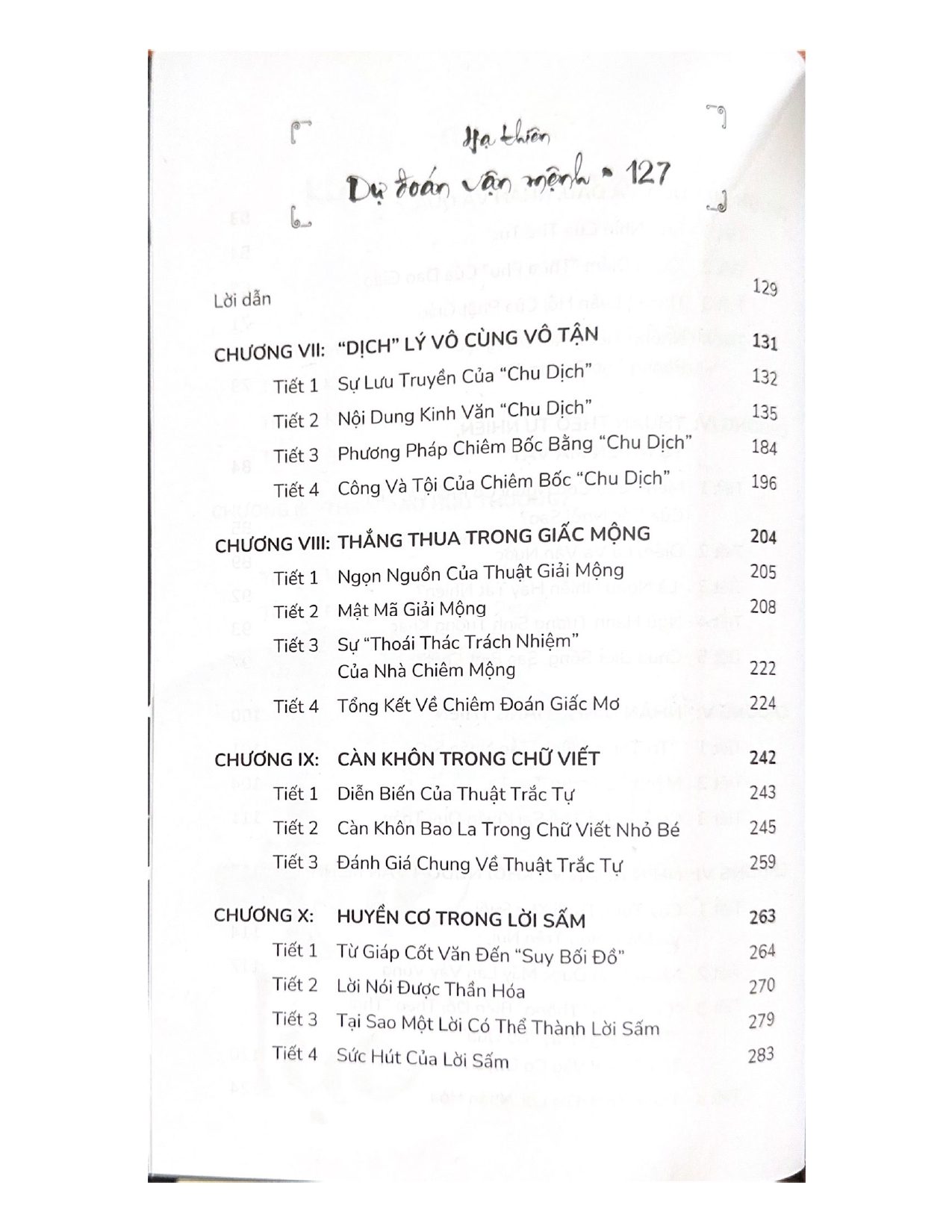 Cuốn sách gồm 7 chương: Chương 1: Nguyên lý cơ bản Lý khí Chương 2: Lập hướng theo Long Chương 3: Lập hướng theo Thủy Chương 4: Lập hướng theo phân châm Chương 5: Lập