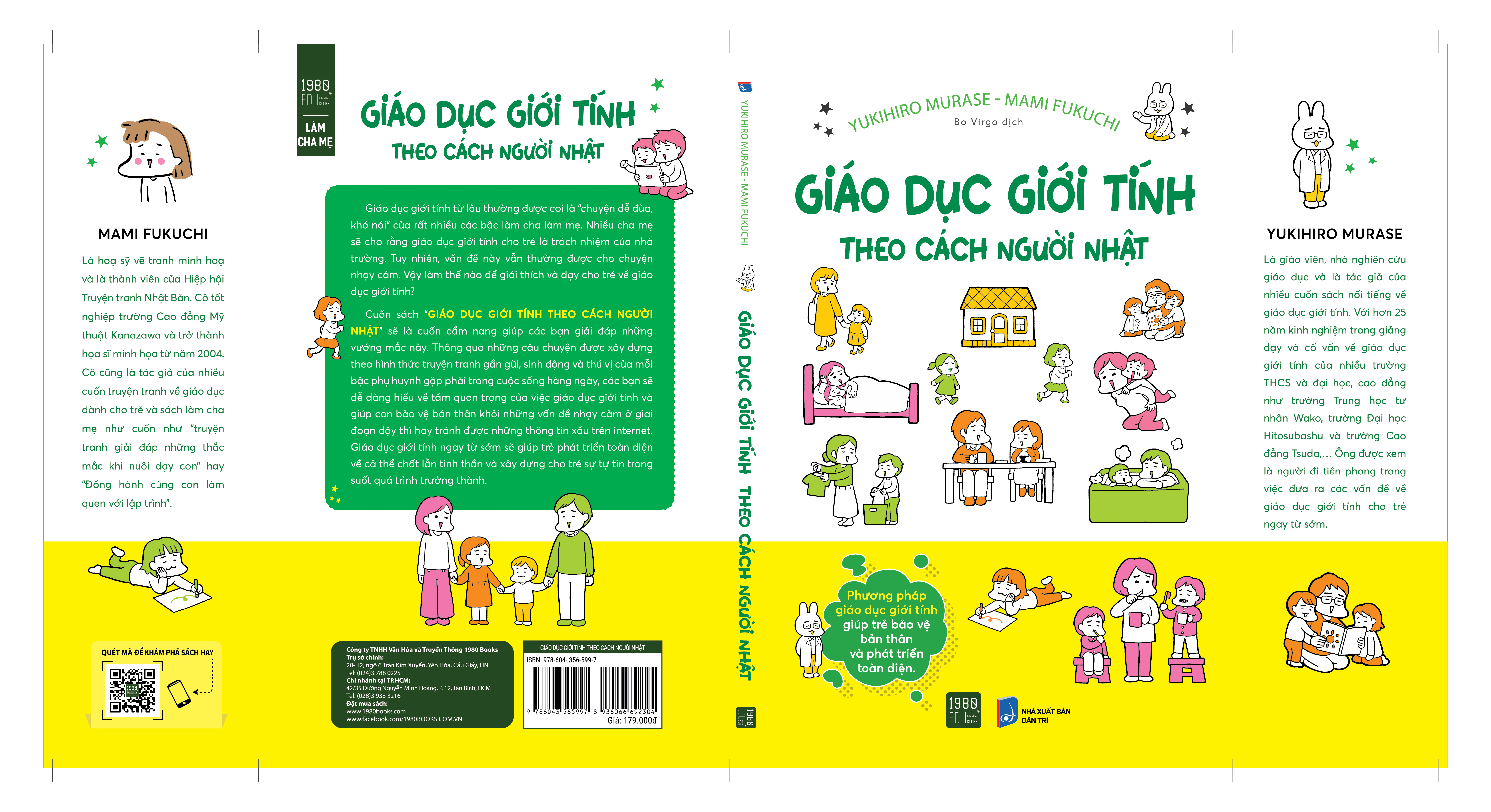 GIÁO DỤC GIỚI TÍNH THEO CÁCH NGƯỜI NHẬT Tác giả: Yukihiro Murase & Mami Fukuchi Người dịch: Bo Virgo THÔNG TIN XUẤT BẢN: Kích thước khổ: 16 x 24 Số trang: 212 Mã EAN: 8936066692304 NXB liên kết: NXB Dân Trí Sách do Công ty TNHH Văn hóa và Truyền thông 1980 BOOKS mua bản quyền và ấn hành quý II/2022 GIÁO DỤC GIỚI TÍNH THEO CÁCH NGƯỜI NHẬT “Giáo dục giới tính” từ xưa đến nay vẫn được xem là chuyện khó nói dễ đùa. Đây cũng là vấn đề được cả gia đình và xã hội đều rất quan tâm. Tuy nhiên, nên dạy giáo dục giới tính cho con khi nào? Nên dạy những gì? Nên nói với con ra sao? Thì nhiều phụ huynh còn e ngại và không biết nên bắt đầu như thế nào. “Giáo dục giới tính theo cách người Nhật” là cuốn truyện tranh về giáo dục giới tính hữu ích giúp cha mẹ và các con có thêm kiến thức và hiểu hơn về tầm quan trọng của việc giáo dục giới tính cho con ngay từ sớm. Cuốn sách là những câu chuyện thú vị và sinh động mà nhiều phụ huynh và các bạn nhỏ gặp phải trong cuộc sống hàng ngày, trong mỗi gia đình. Mỗi câu hỏi và vấn đề được đưa ra đều được nhân vật Bác sĩ Thỏ tư vấn và giải thích giúp các bậc cha mẹ hiểu và nắm bắt được các thông tin để giúp bảo vệ con khỏi các vấn đề liên quan tới xâm hại tình dục hay những thông tin xấu trên mạng Nội dung sách gồm các phần: