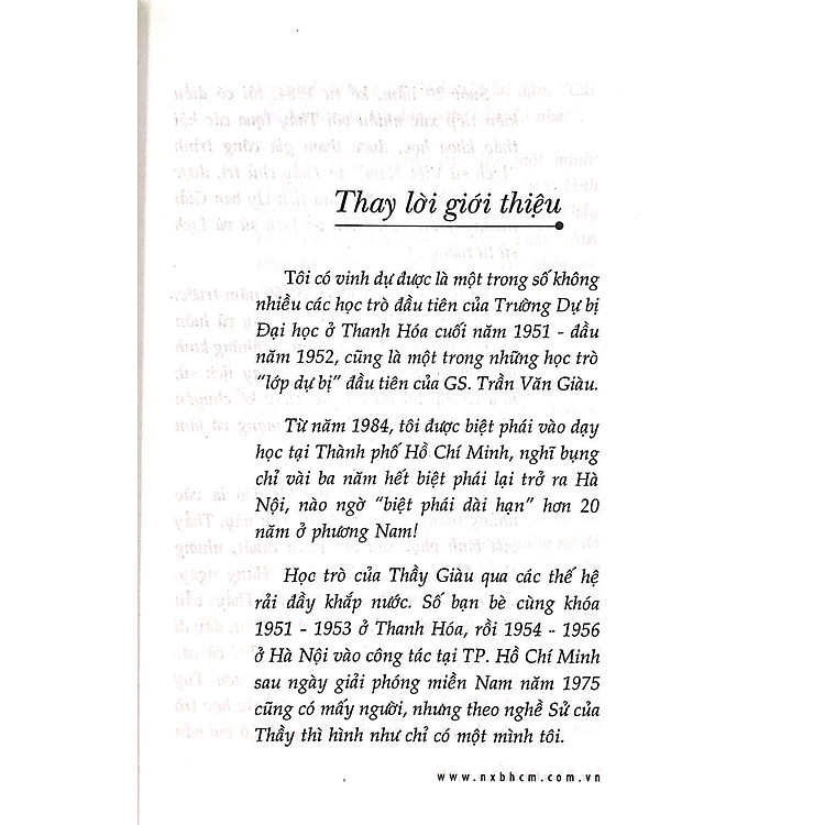 Sứ mệnh của nhà giáo - theo GS. Trần Văn Giàu - là biết lựa chọn (dạy là chọn), lượm lặt những gì hay nhất thuộc về tinh thần để truyền lại cho các thế hệ học trò. Có thể coi thầy giáo như một quyển sách, nhưng là quyển sách biết gạn lọc những gì xấu, dở, dối trá để giữ lại những gì đúng, hay, chân thực. Là nhà giáo dạy Lịch sử - theo GS. Trần Văn Giàu - thì sứ mệnh lại càng lớn: “Ở trên đời không có sách nào, đạo lý nào có tác dụng xây dựng con người bằng Sử hết… Giáo dục tư tưởng cho nhân dân ở bất kỳ thời nào, nhất là hiện nay, thì học lịch sử nói chung, lịch sử cách mạng và kháng chiến nói riêng là cách giáo dục tư tưởng sâu xa nhất, cụ thể nhất”.