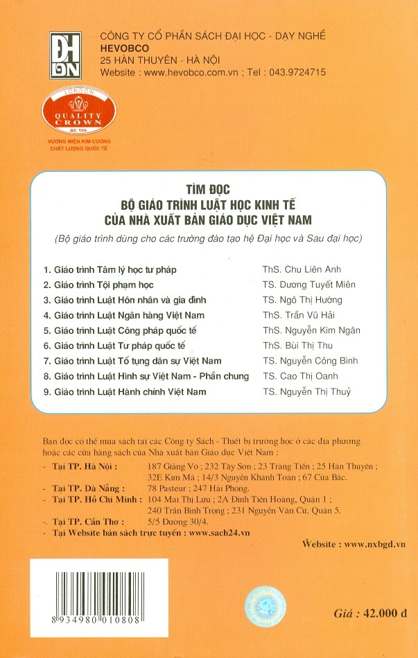 Công ty phát hành: Công ty TNHH Thương mại và Dịch vụ Văn hóa Hà Nội Tác Giả: PGS.TS. Phạm Thị Giang Thu - TS. Nguyễn Thị Lan Hương NSX - NXB: Đại học Quốc
