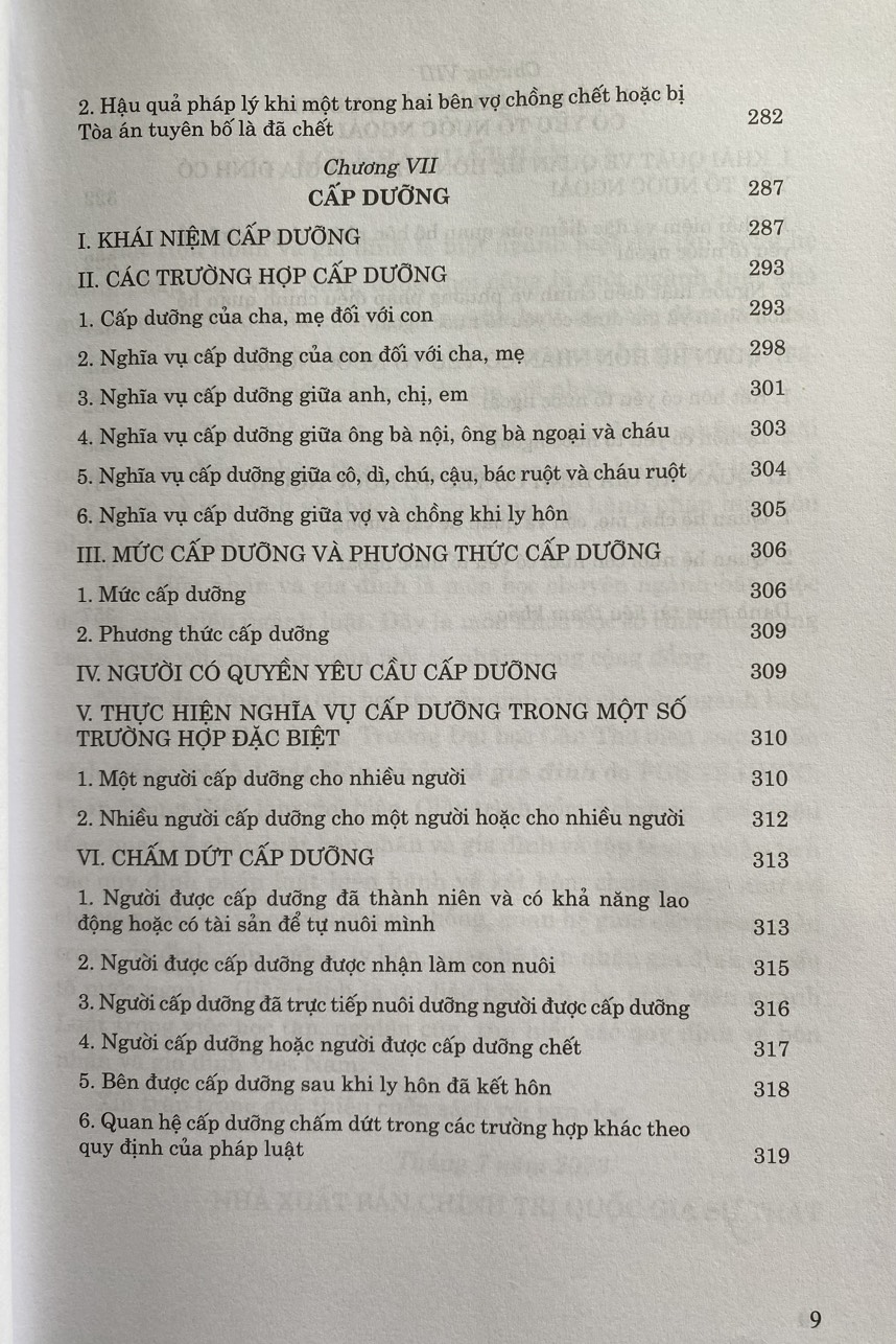 Mục lục: Chương 1: Những quy định chung Chương 2: Kết hôn Chương 3: Quan hệ giữa và chồng Chương 7: Cấp dưỡng Chương 8: Quan hệ hôn nhân và gia đinh có yếu tố