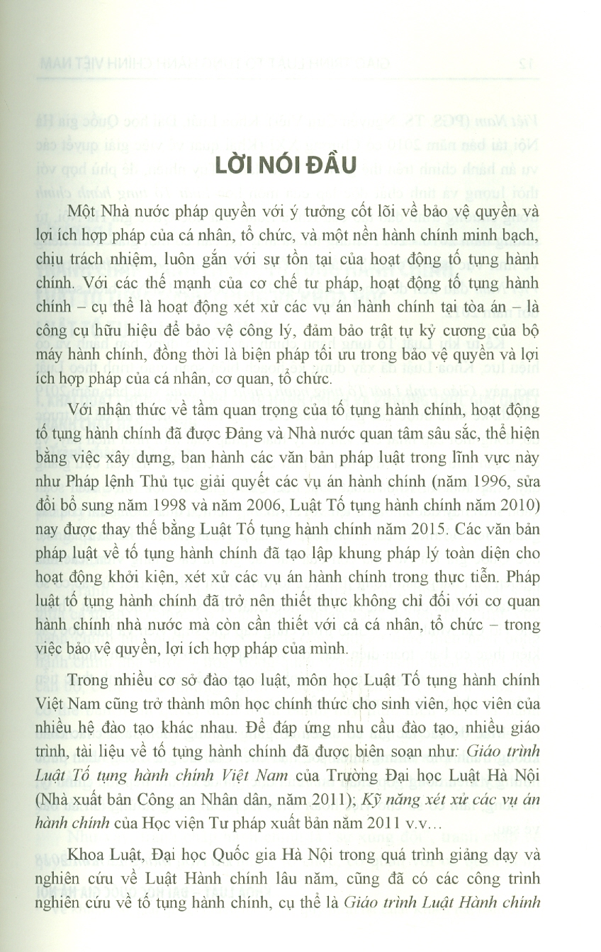 Nhằm hỗ trợ cho sinh viên, học viên các cơ sở đào tạo học tập, tìm hiểu, nghiên cứu các nội dung của môn học Luật Tố tụng hành chính Việt Nam một cách căn