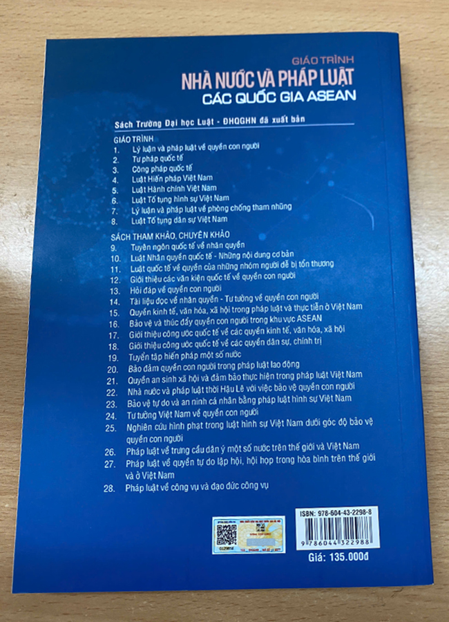 Mua tại TiktokGiáo trình Nhà nước và Pháp luật các Quốc gia ASEAN Tác giả: GS.TS. HOÀNG THỊ KIM QUẾ (Đồng chủ biên) Nhà xuất bản: NXB Đại Học Quốc Gia Hà Nội Năm xuất bản: 2024 Số trang: 350 Kích thước: 16 x 24cm Loại bìa: Bìa mềm Học phần nhà nước và pháp luật các quốc gia ASEAN trong chương trình đào tạo cử nhân luật cung cấp những kiến thức cơ bản về nhà nước và pháp luật các quốc gia ASEAN. Trên cơ sở đó, giúp sinh viên, học viên cũng như các đối tượng quan tâm tìm hiểu vấn đề này nhận biết những điểm tương đồng và sự khác biệt về văn hóa, lịch sử, chính trị, hình thức, tổ chức bộ máy nhà nước, pháp luật của các quốc gia thành viên ASEAN...