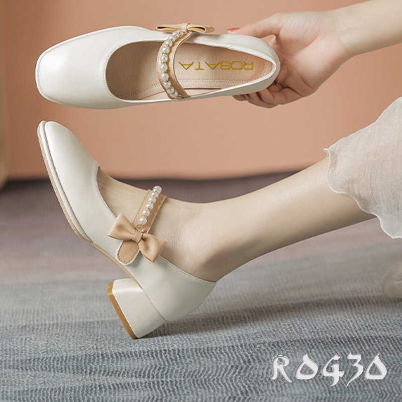 ROSATA - thương hiệu giày thời trang nữ cao cấp THUẦN VIỆT NHƯNG CHẤT LƯỢNG QUỐC TẾ ------------------ Giày công sở nữ 5p RO622 màu Kem ROSATA tại BCASHOP mũi vuông, thanh lịch và sang