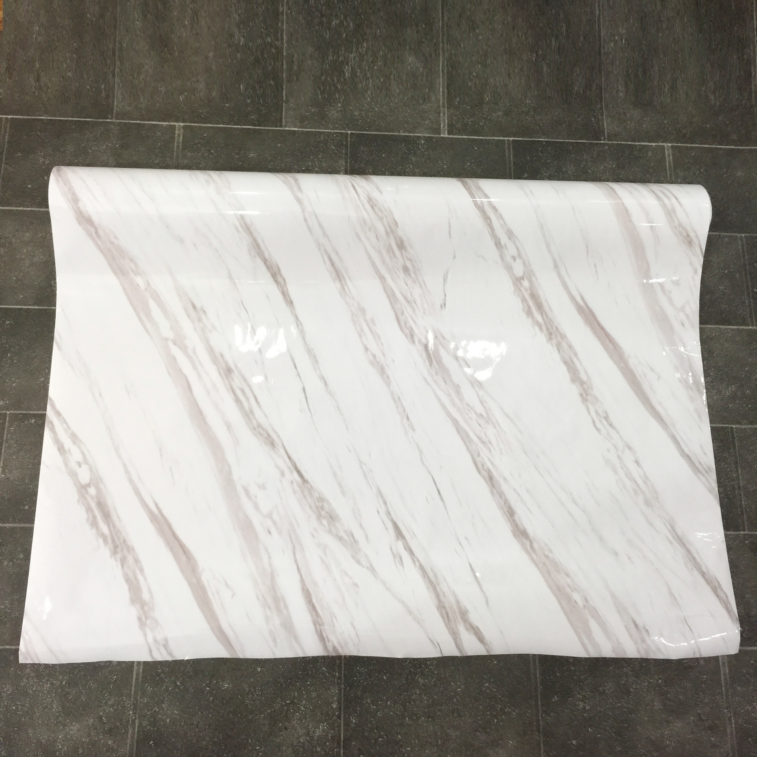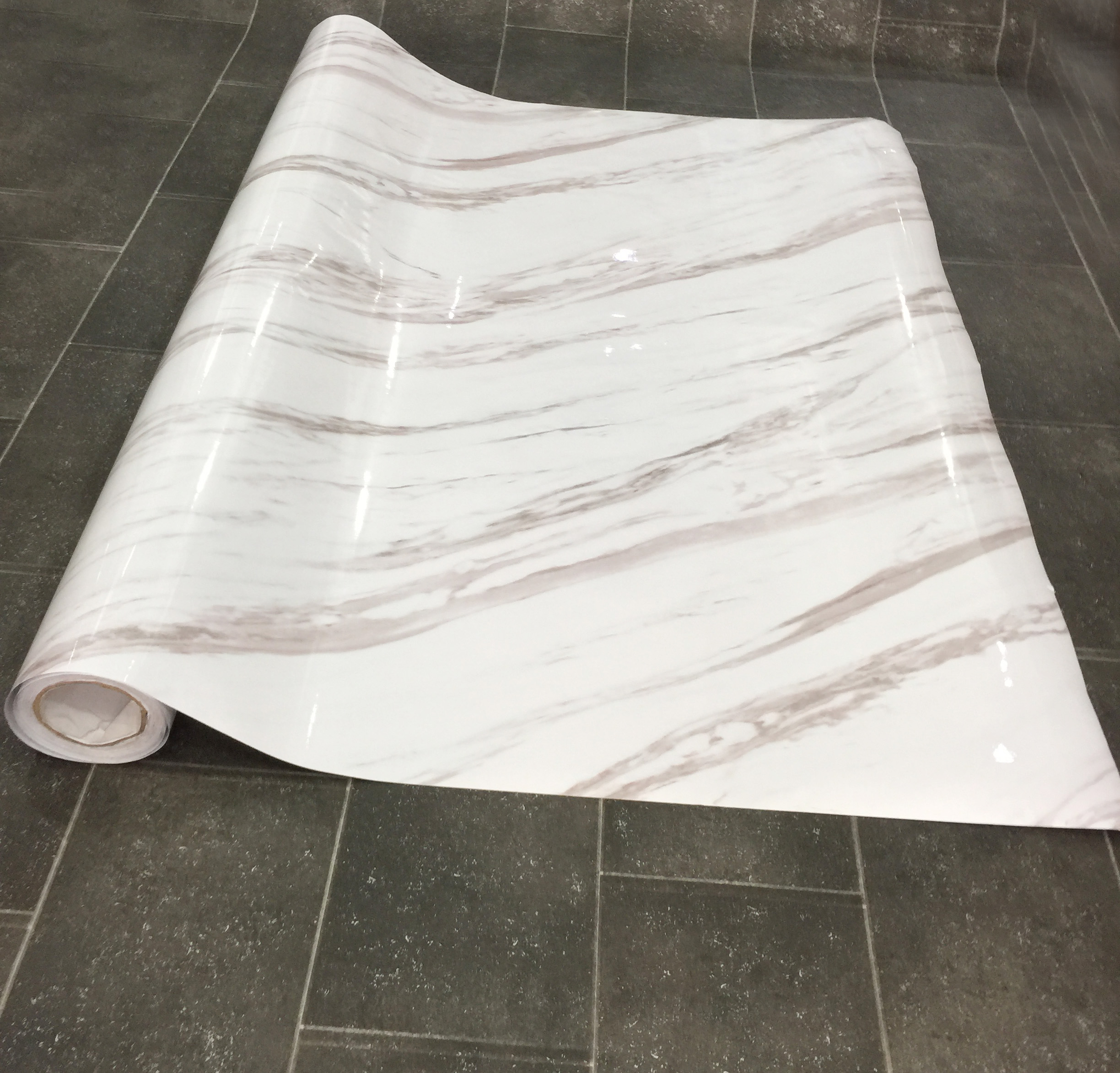 Mẫu giấy dán tường giả đá hoa cương màu trắng này có sẵn keo rồi, khách chỉ cần lột ra dán thôi.