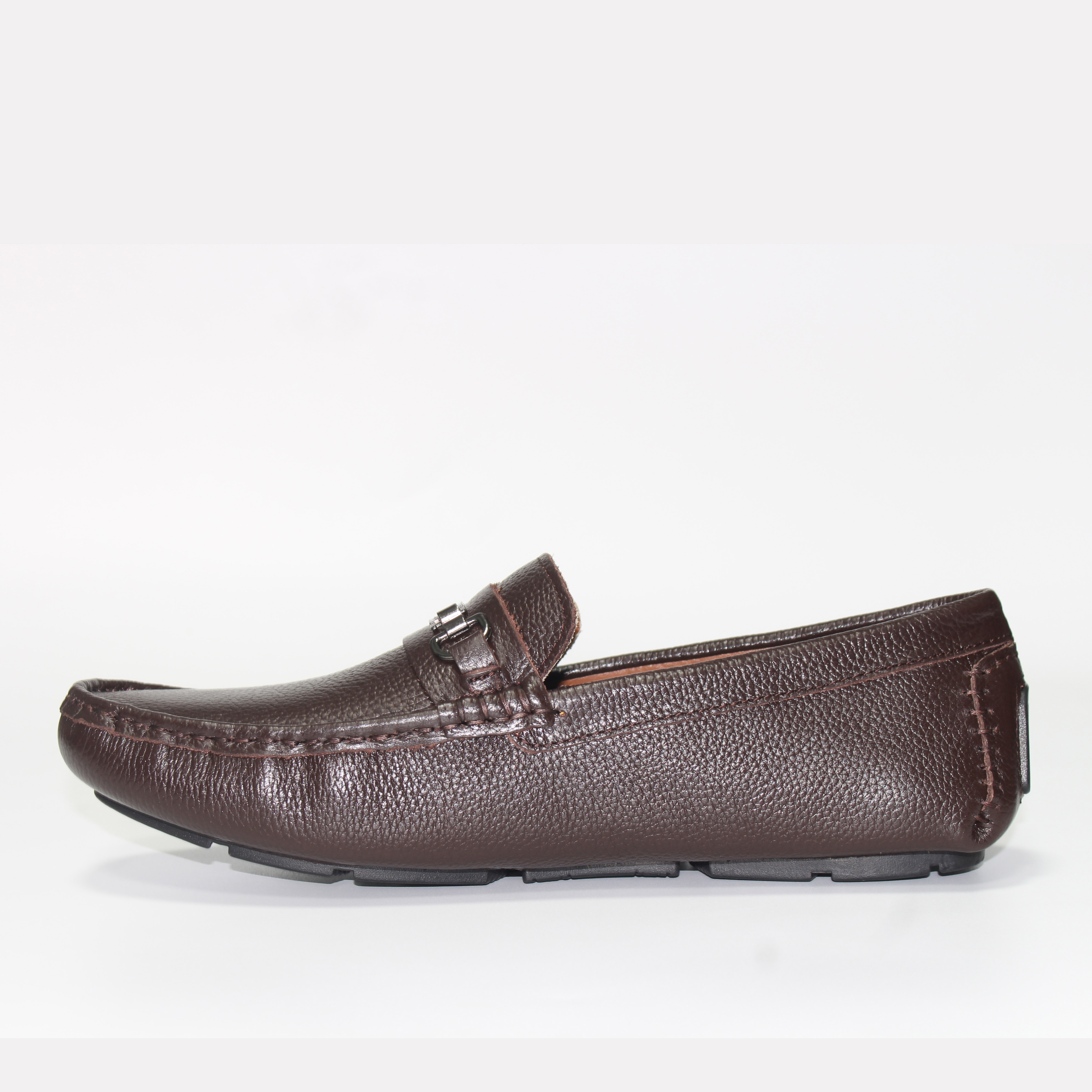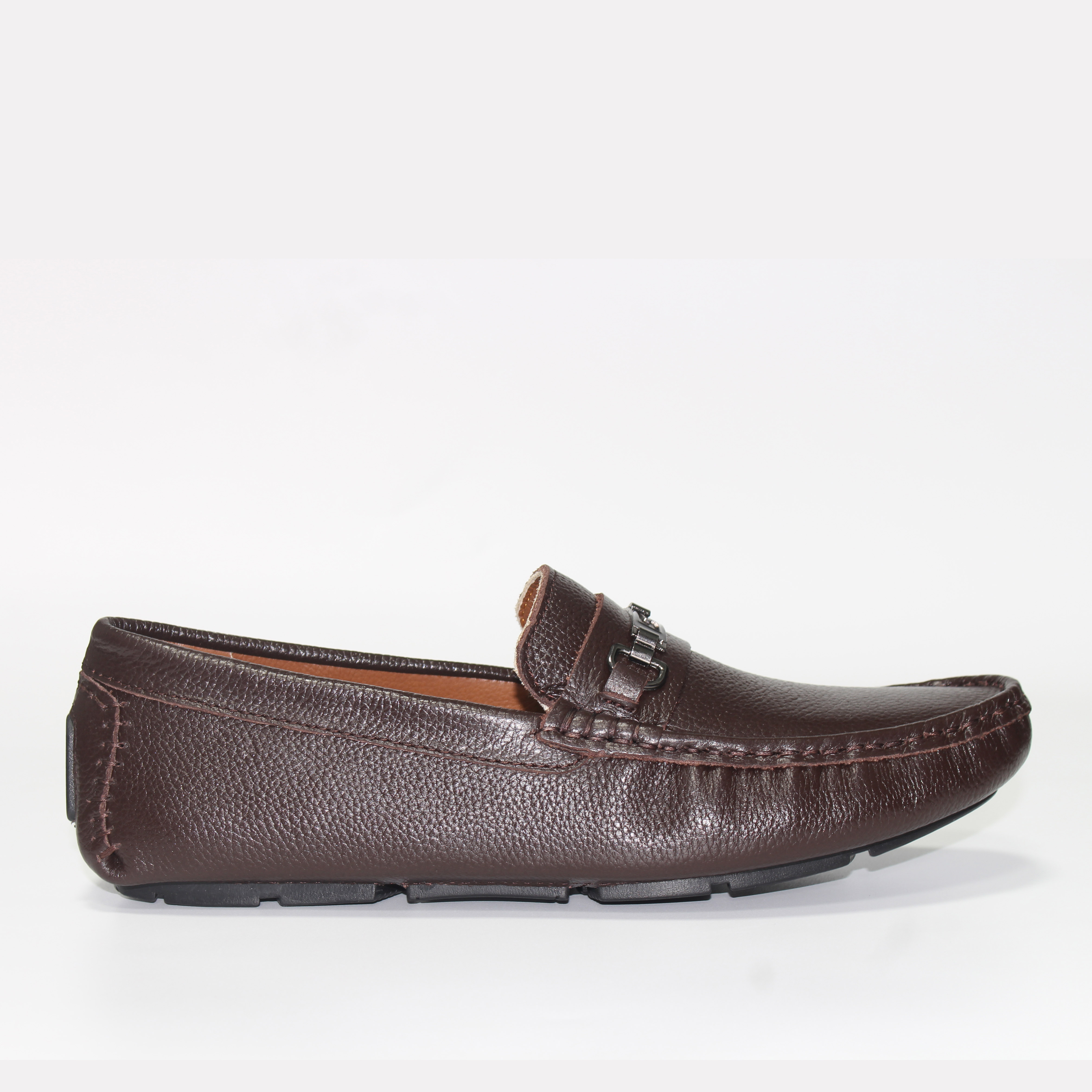 Trên tay mẫu Giày mọi da bò thật màu đen và nâu đỏ KK459