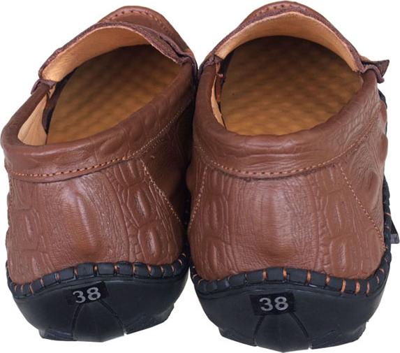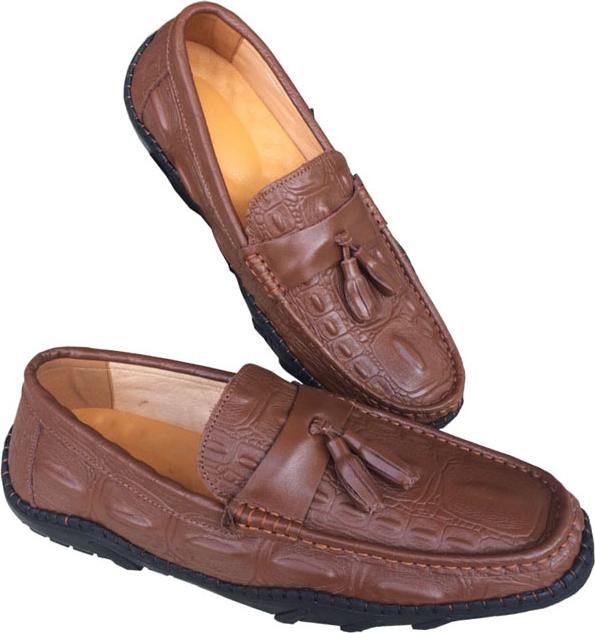 GIÀY MỌI NAM DA CÁ SẤU GAI ĐUÔI NÂU