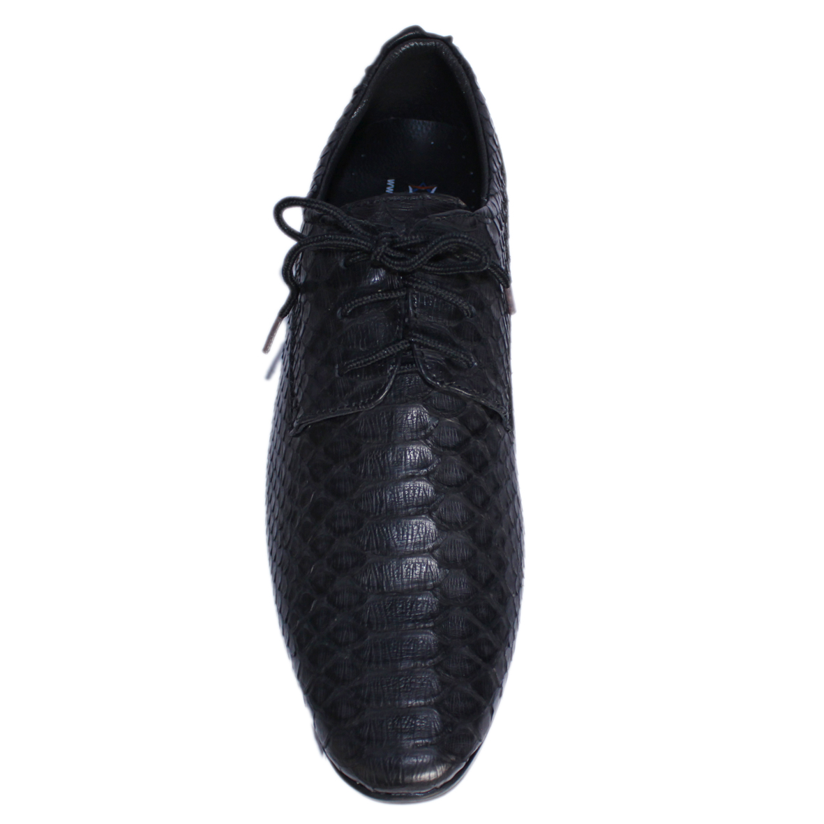 Giày tây nam Huy Hoàng da bò vân da trăn cột dây màu đen 7798