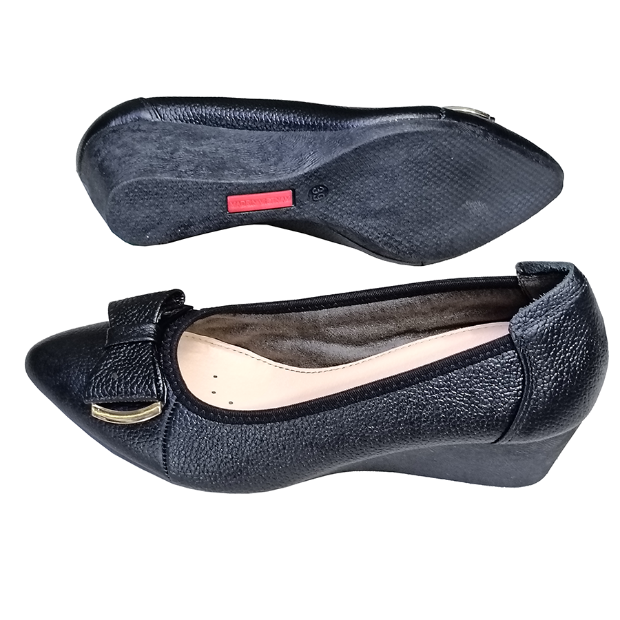 Giày đế xuồng 5cm da bò thật mũi nhọn màu đen