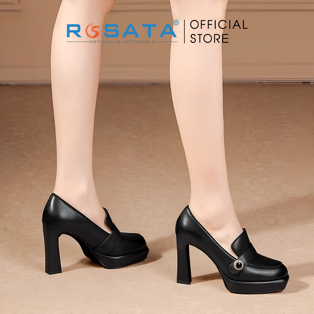 ROSATA - thương hiệu giày thời trang nữ cao cấp THUẦN VIỆT NHƯNG CHẤT LƯỢNG QUỐC TẾ ------------------ Cao gót nữ đế đúp 8p RO625 màu đen ROSATA tại BCASHOP thiết kế mũi vuông sành