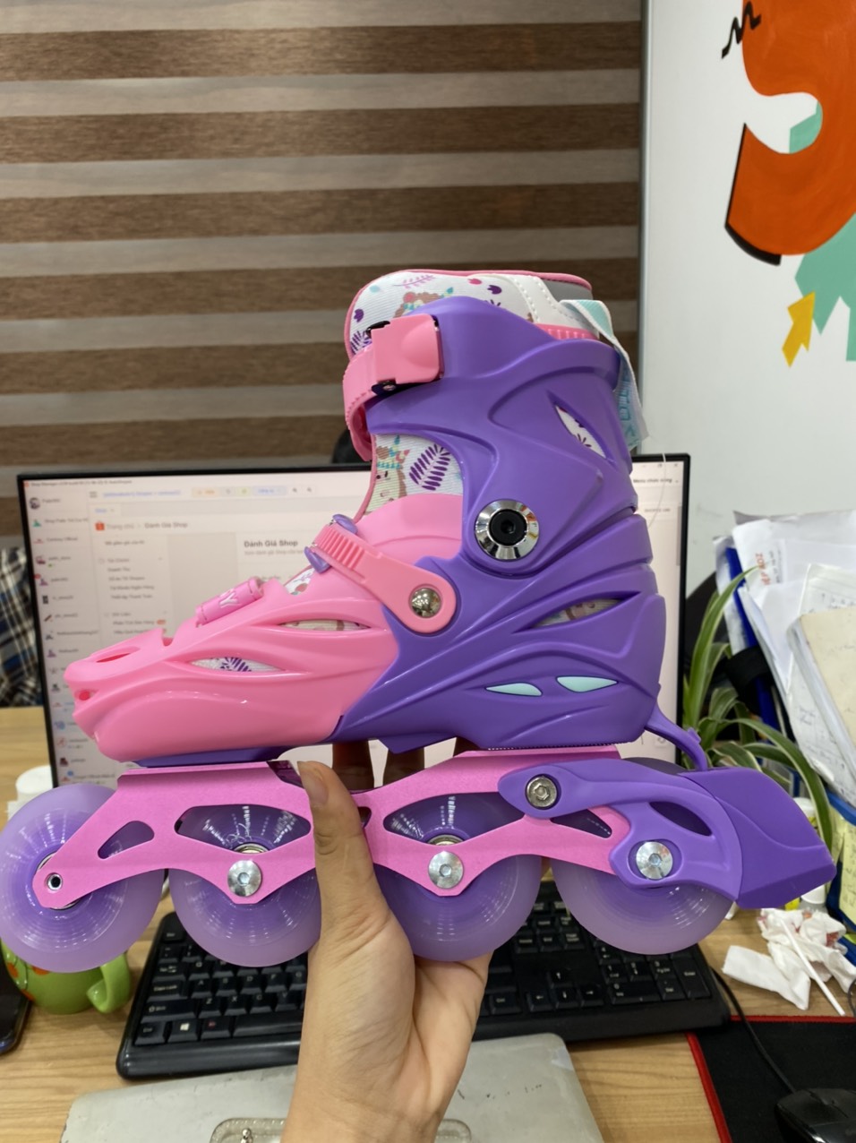 - Giày Trượt Patin Longfeng 906 Đại Nam Sport LF906 được thiết kế cải tiến với 2 bánh dọc trước, 2 bánh song song ở sau giúp cho bé trượt dễ dàng hơn. - Bánh xe