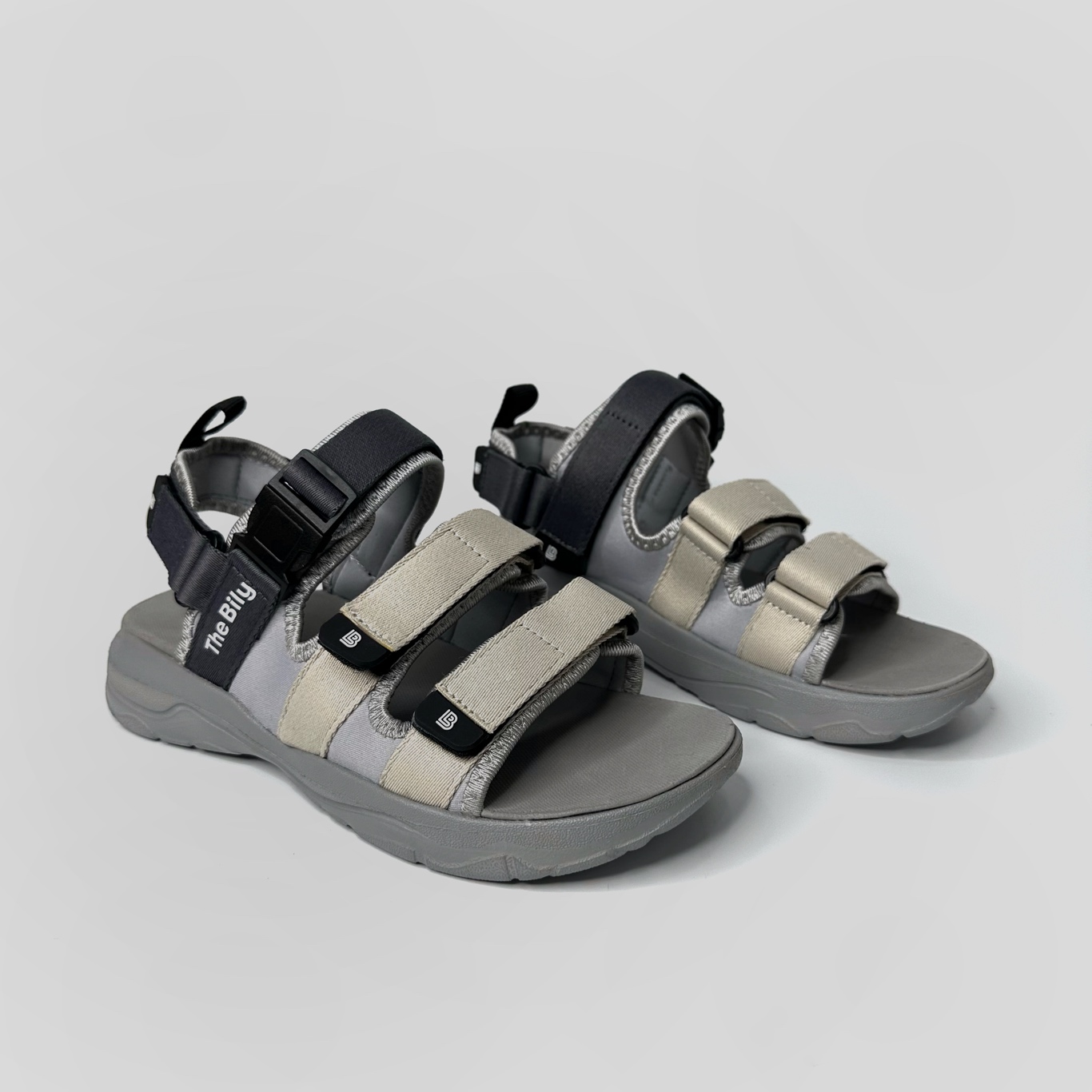✨Giày Sandal Nam Nữ Unisex The BiLy Quai Ngang Dây Dù Đế IP Siêu Êm Nhẹ Đế Xám Màu Xám Kem-BLDX08