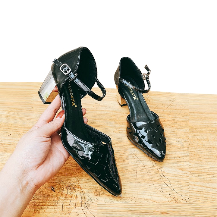 MÔ TẢ SẢN PHẨM: Giày cao gót nữ bít mũi, hở gót, da bóng ROSATA RO654 - 9p - Đen, Vàng - HÀNG VIỆT NAM - BKSTORE Giày được làm từ chất liệu da PU