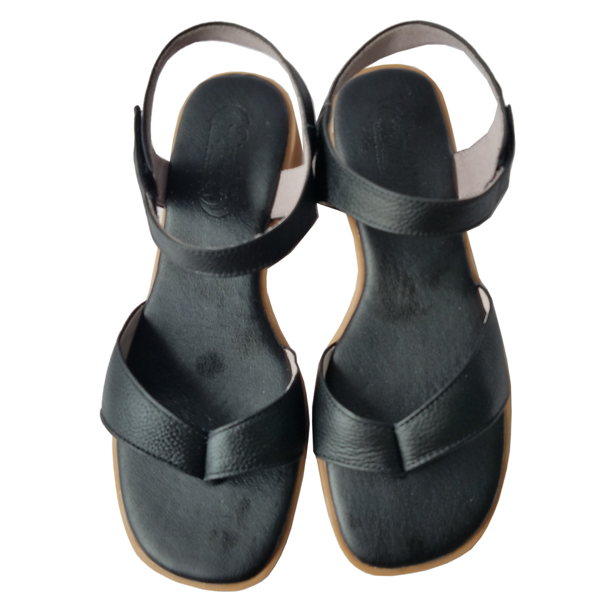 Dép da nam xỏ ngón màu đen - da bò thật 100%