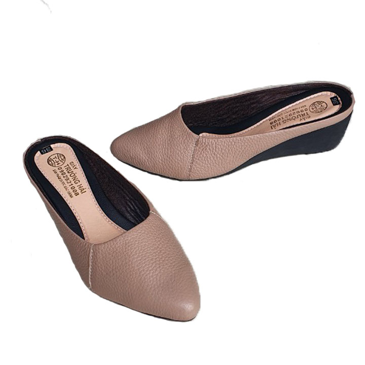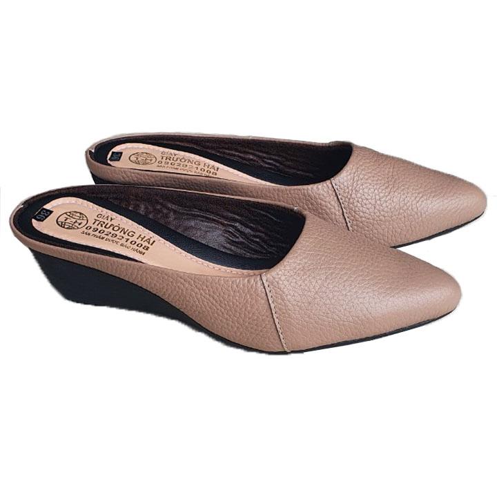 ✨Giày sục nữ đế xuồng 5cm da bò Trường Hải màu hồng phấn da mềm mại không bong tróc SN136
