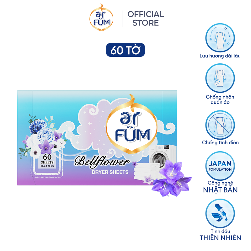 - Giấy sấy thơm quần áo Arfum giúp loại bỏ mùi khó chịu và chống tĩnh điện hiệu quả.
