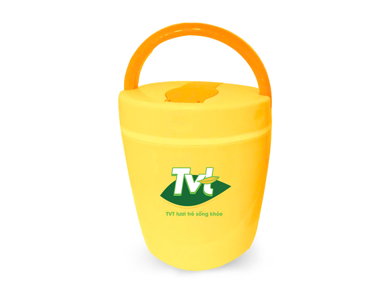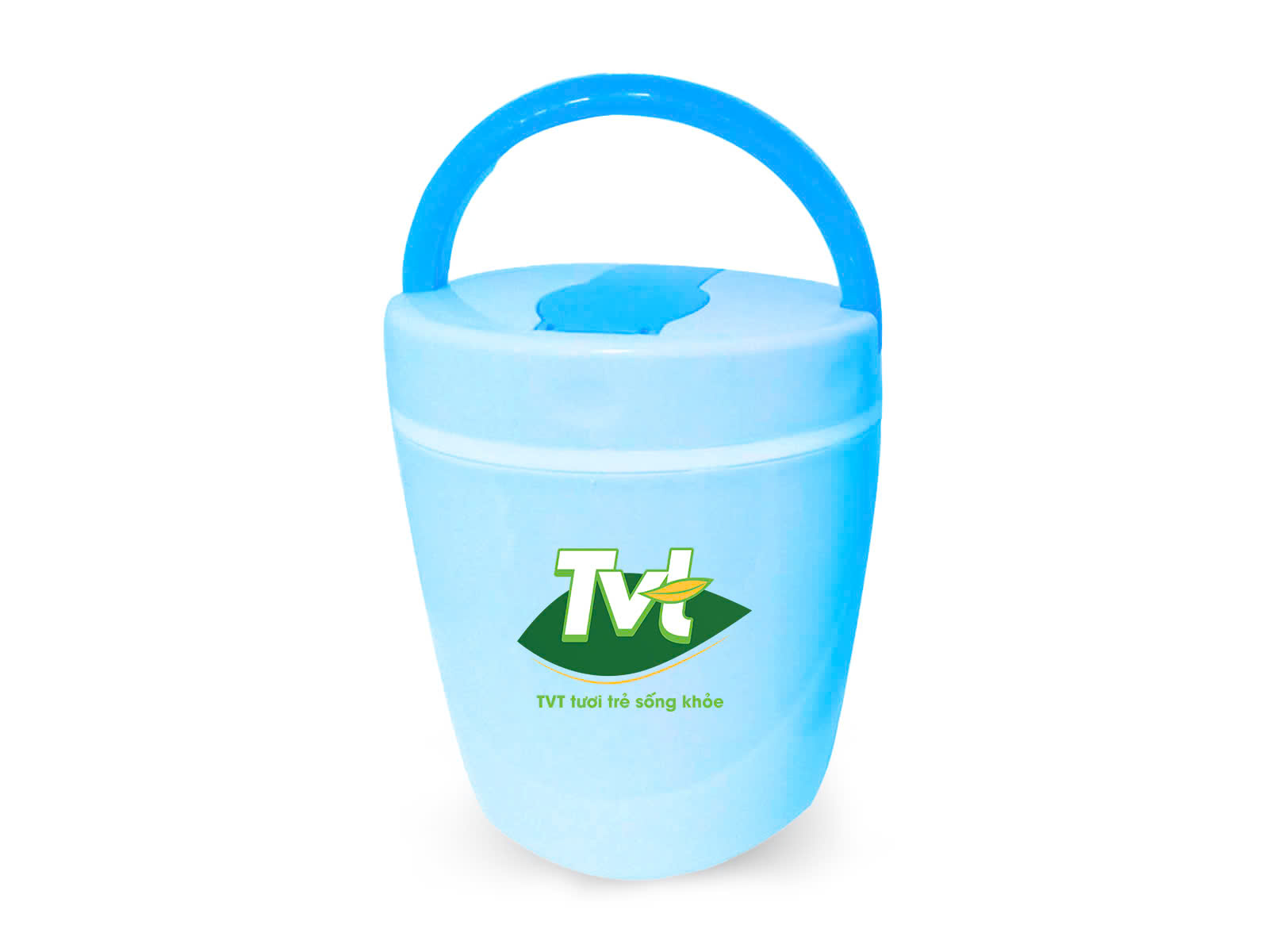 BÌNH ĐÁ KẾT HỢP CAMEN TVT Hình dáng: Hình trụ có nắp đậy Chất liệu: Nhựa Công dụng: Đựng thức ăn hoặc thức uống Không sử dụng ở nhiệt độ >100 độ C Nơi sản