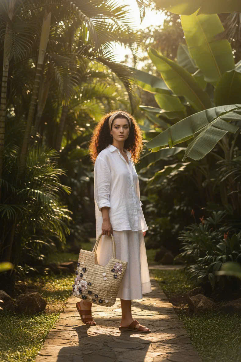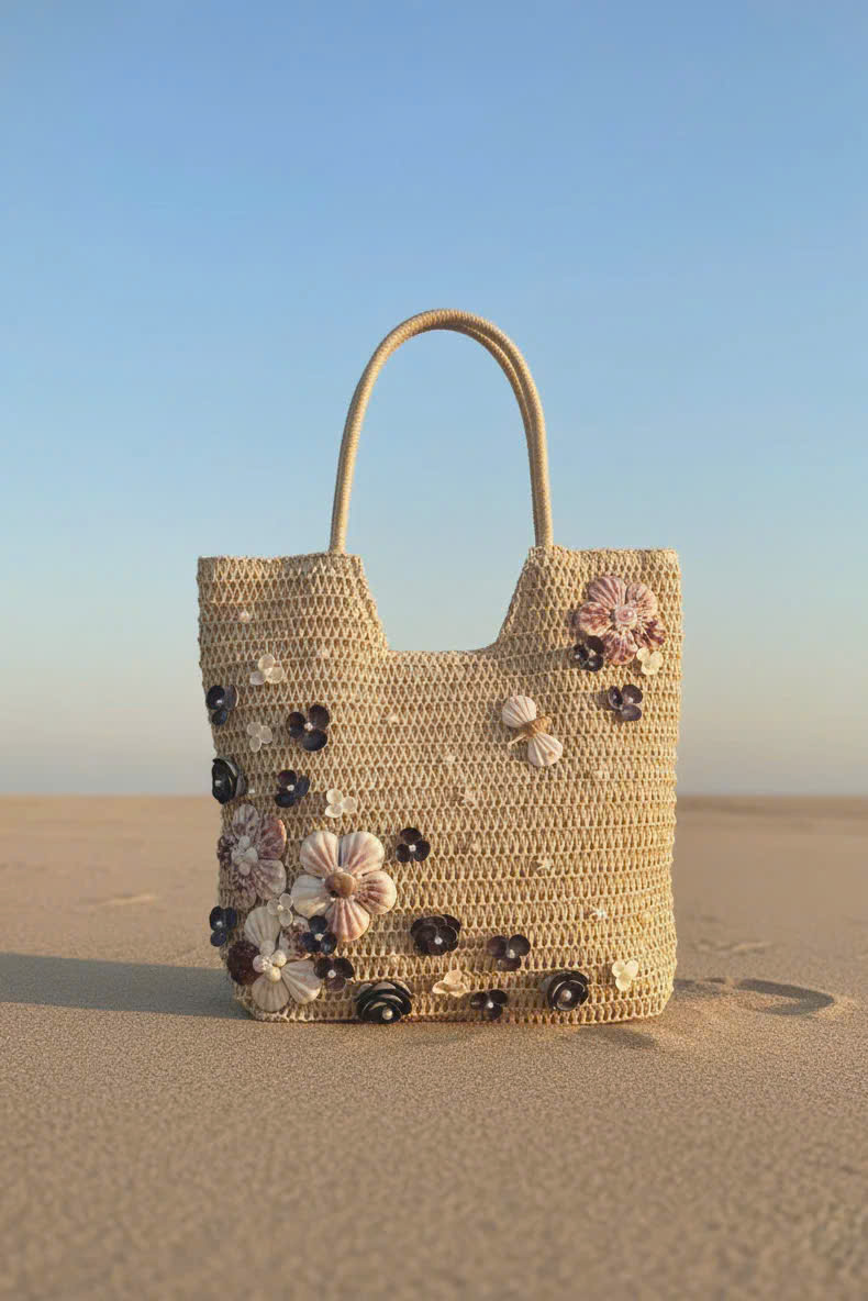 - Chất liệu giỏ: cói giấy, canvas - Chất liệu trang trí: vỏ sò, ốc đã qua xử lý chống ẩm mốc - Nghệ nhân trang trí: Minh Thu Từ mạch đất Mẹ, sự sống
