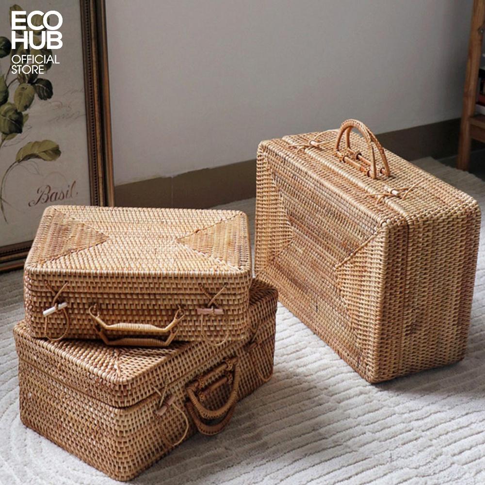 ✨Giỏ đựng đồ ECOHUB bằng mây có tay cầm du lịch, đựng đồ dã ngoại E00197