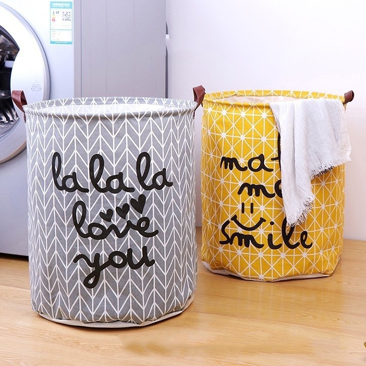Giỏ, Túi đựng quần áo, giày dép, vớ tất, đồ giặt, đồ dơ, đồ chơi, gấp, xếp gọn gàng dễ thương (vải bố) W01_(giao mẫu ngẫu nhiên) · Chất liệu dày dặn, không thấm ·