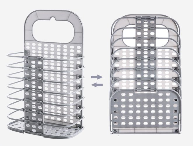 - Giỏ nhựa đa năng gấp gọn tiện lợi có thể treo mọi nơi với mọi loại tủ hay ngăn tủ thông thường, di chuyển dễ dàng mà không vướng và mất công tháo dỡ. Sản phẩm dùng đựng quần áo bẩn, các loại xà phòng, hộp đựng, giấy gói thực phẩm, hoặc rác thải cho phòng bếp, phòng tắm, phòng giặt là, phòng ngủ