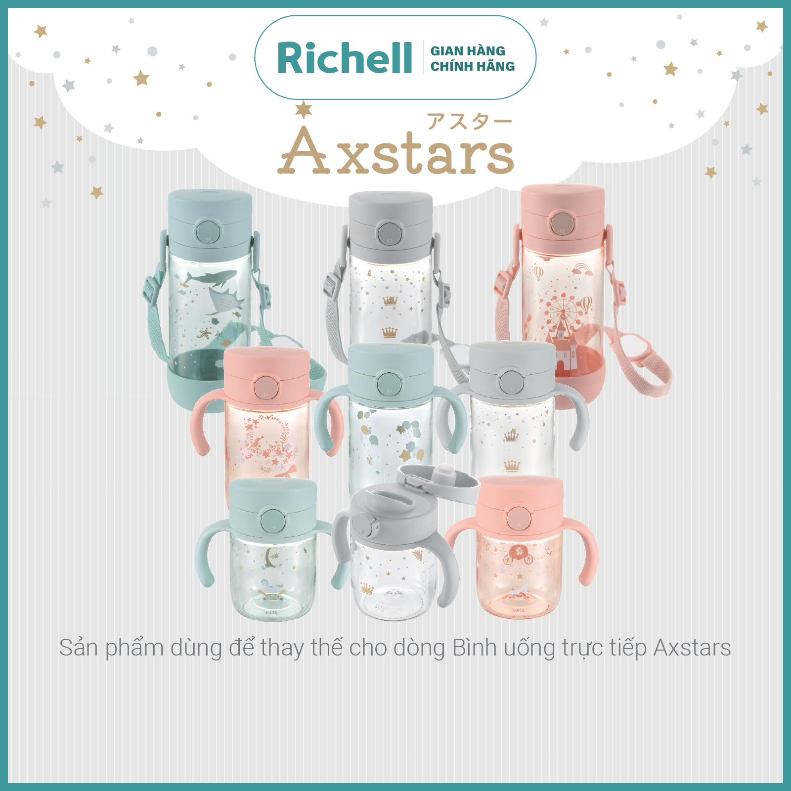 Sản phẩm tương thích với tất cả các Bình ống hút và Bình uống trực tiếp thuộc dòng AXSTARS Richell Nhật Bản