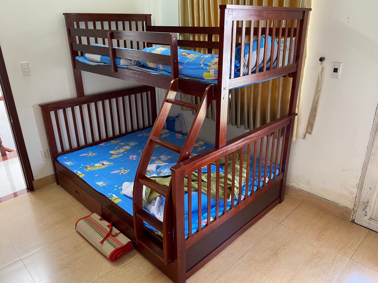 Giường 2 tầng K.Bed 128 mang phong cách hiện đại Giường gỗ 2 tầng trẻ em có ngăn kéo K.Bed 128 là một trong những chiếc giường tầng hiện đại đạt tiêu chuẩn quốc tế để xuất khẩu. Với mẫu mã sang trọng, độ bền cao cùng với sự tinh tếgiúp bạn tiết kiệm được tối đa không gian trong gia đình.Với thiết kế chuyên biệt khi người lớn ngồi vào giường tầng 1sẽ không chạm đầu vào tầng trên. Đây là đặc điểmkhác biệt so với các dòng sản phẩm giường tầng trẻ em khác. Sản phẩm được làm từ gỗ thông cao cấp đã được xử lý chống mối mọt, cong vênh. Đặc biệt, mẫugiường tầng gỗ cho bé K.Bed 128 này còn có 2 ngăn kéo rộng rãi thoải mái có thể cho bé đựng những đồ dùng cá nhân. Thiết kế lan can chắn an toàn khi bé nằm ngủ. Cầu thang đơn rộng rãi và vững chãi giúp bé lên xuống dễ dàng.