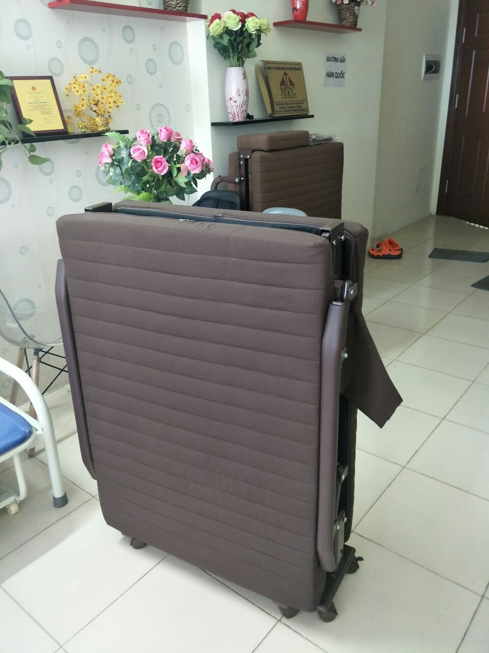 Giường gấp văn phòng rộng 80cm, gấp 2 phần, có bánh xe, khung sắt. 0936.331.291