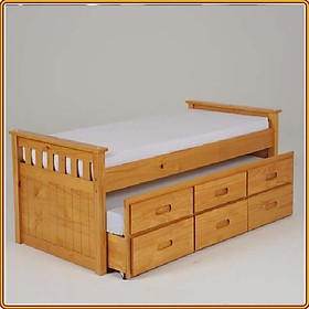 + Chất liệu: Khung giường gỗ thông Newzealand, phân tầng, Vách, đáy hộc gỗ công nghiệp, thang giường MDF chịu lực + Kích thước: kích thước phủ bì, tầng trên ưới 1mx2m Giường tầng hộp