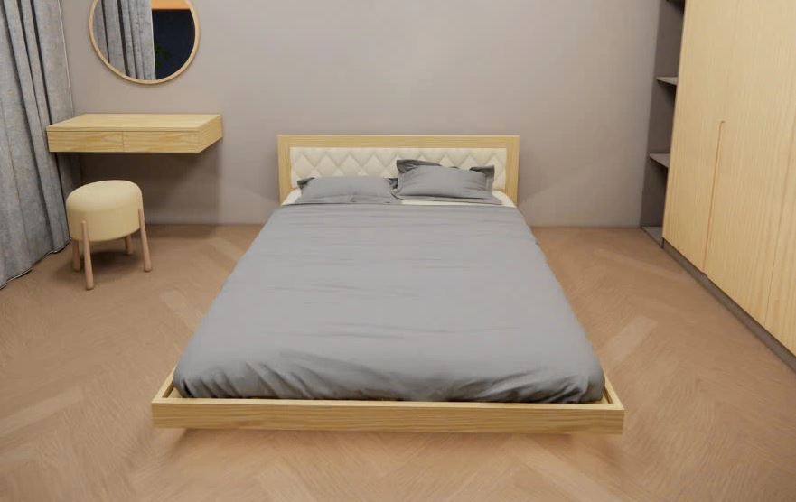 - Màu sắc: Giường có màu sắc chủ đạo là màu gỗ tự nhiên, tạo nên sự hài hòa với không gian phòng ngủ. Phần bọc nệm đầu giường thường có màu tương phản hoặc cùng tông với màu gỗ để tạo điểm nhấn.