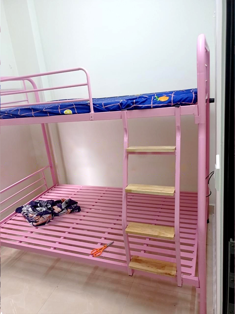Mẫu giường sắt 2 tầng kích thước tầng 1 rộng 1m6, tầng 2 rộng 1m2 dài 2m chân giường sắt hộp 4x8