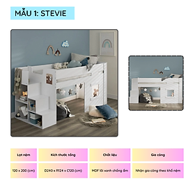 - Bộ Sưu Tập : B118 cầu Thang Đảo Chiều - Giường 2 Tầng 1m / 1m2 - Kich Thước : Dài 204 x Rộng 106/126 x Cao 98/178cm - Tầng 01 : Rộng 106 cm - Tầng 02 :