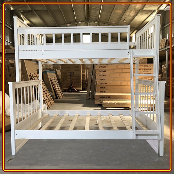 Giường tầng xuất khẩu Derby có kích thước lọt lòng giường trên/dưới là 100x193 cm / 120 x 193 cm, phủ bì 206x128x178 cm. Khoảng cách giữa 2 tầng là 98 cm, cầu thang có