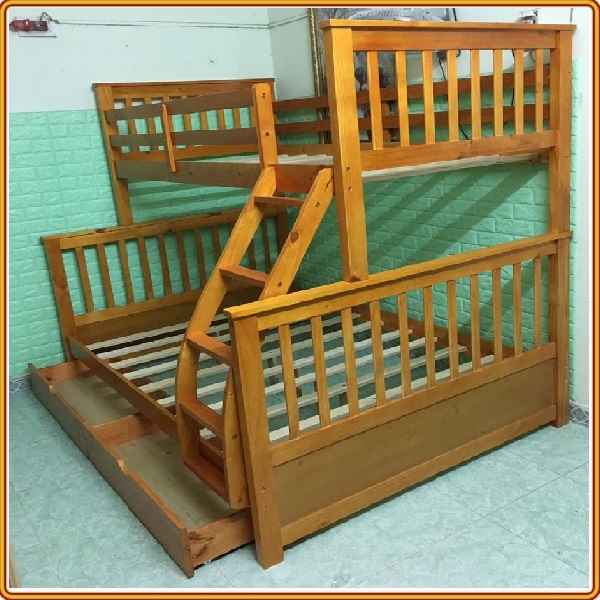 + Chất liệu: Khung giường gỗ thông Newzealand, phân tầng, Vách, đáy hộc gỗ công nghiệp, thang giường MDF chịu lực + Kích thước: kích thước phủ bì, tầng trên ưới 1mx2m Giường tầng hộp