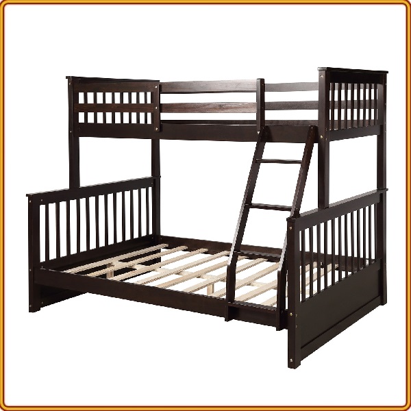 Giường tầng xuất khẩu Derby có kích thước lọt lòng giường trên/dưới là 100x193 cm / 120 x 193 cm, phủ bì 206x128x178 cm. Khoảng cách giữa 2 tầng là 98 cm, cầu thang có