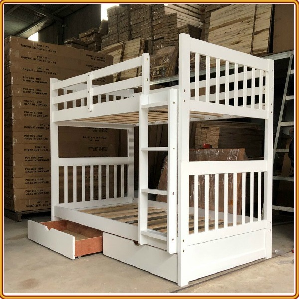+ Chất liệu: Khung giường gỗ thông Newzealand, phân tầng, Vách, đáy hộc gỗ công nghiệp, thang giường MDF chịu lực + Kích thước: kích thước phủ bì, tầng trên ưới 1mx2m Giường tầng hộp