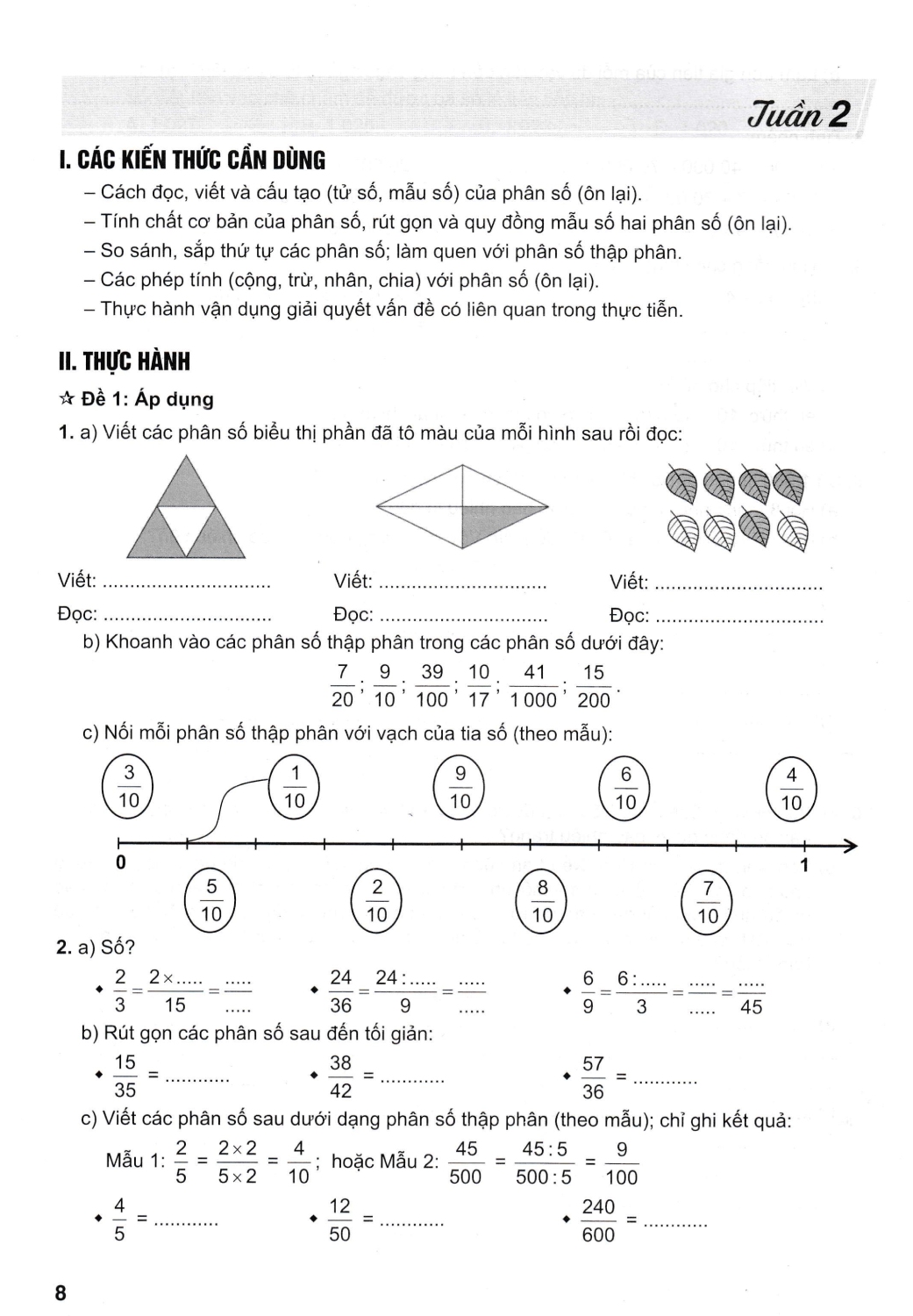 Phần 1: Trình bày dưới dạng các để ôn tập cuối tuần và trải nghiệm giải quyết vấn đề trong phạm vi kiến thức đã học; trong 35 tuần học có 70 để (cuối mỗi tuần có 2 đề); mỗi để cần làm trong khoảng 35 phút đến 40 phút.