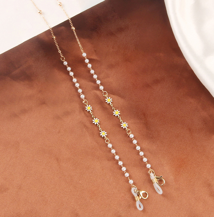 ✨Glasses chain dây giữ kính đeo cổ mix hạt châu và hoa cúc nhỏ xinh phong cách Hàn Quốc