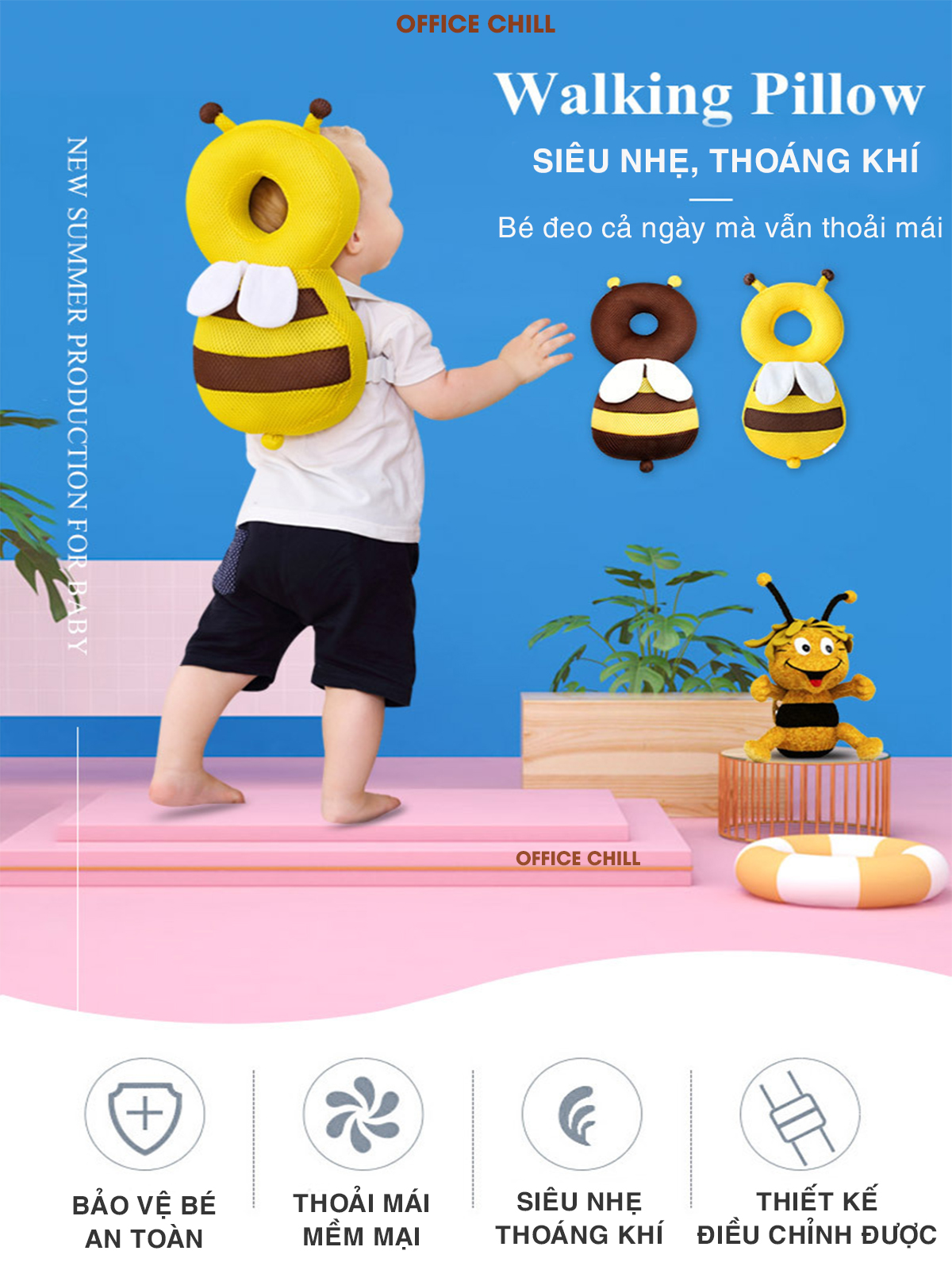 Gối Bảo Vệ Toàn Diện Đầu, Cổ, Cột Sống Cho Bé Tập Đi OFFICE CHILL Lá Chắn Đầu Tiên Bảo Vệ Trí Não Của Bé