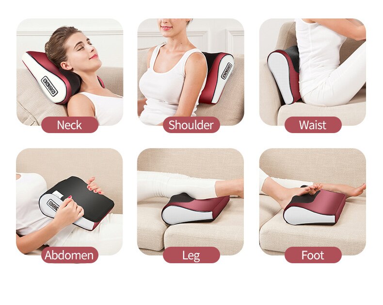 Gối Massage hồng ngoại đa năng - Sử dụng được cho toàn bộ cơ thể – cổ, vai, gáy, lưng trên, lưng dưới, cẳng chân và bàn chân - Thiết kế khoa học tăng thêm