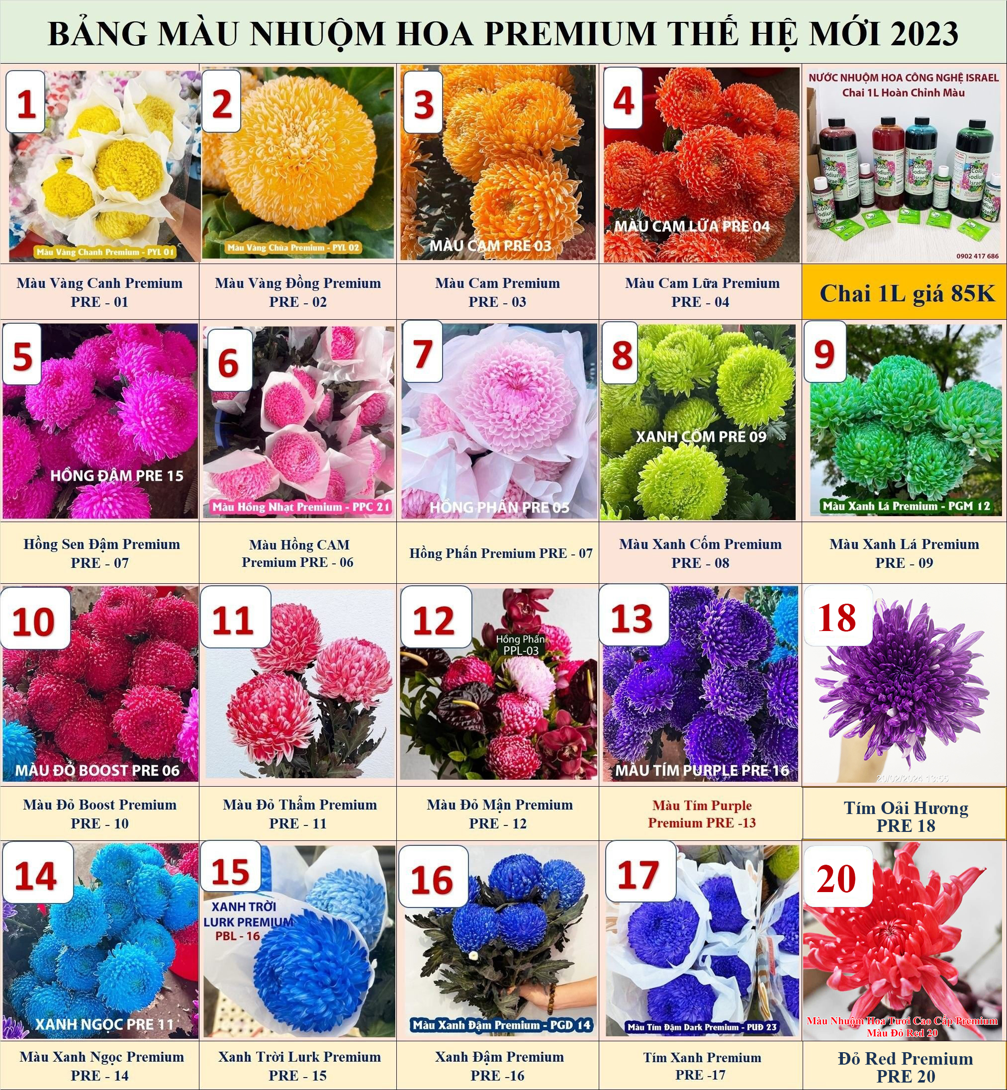 Gói Bột Nhuộm Hoa Tươi Cao Cấp Premium Color công Nghệ Israel Cải Tiến Mới Với hơn 20 màu nhuộm hoa