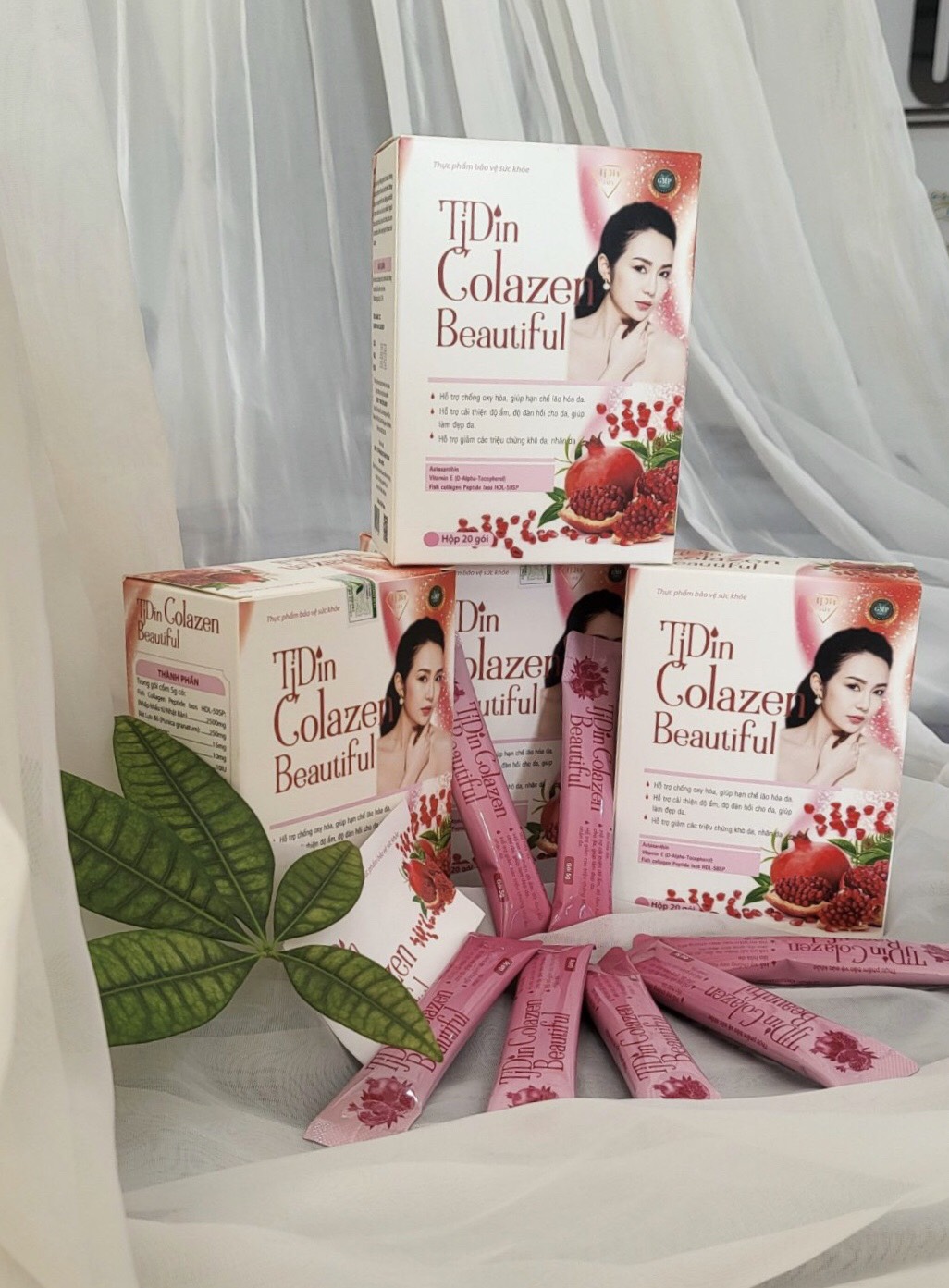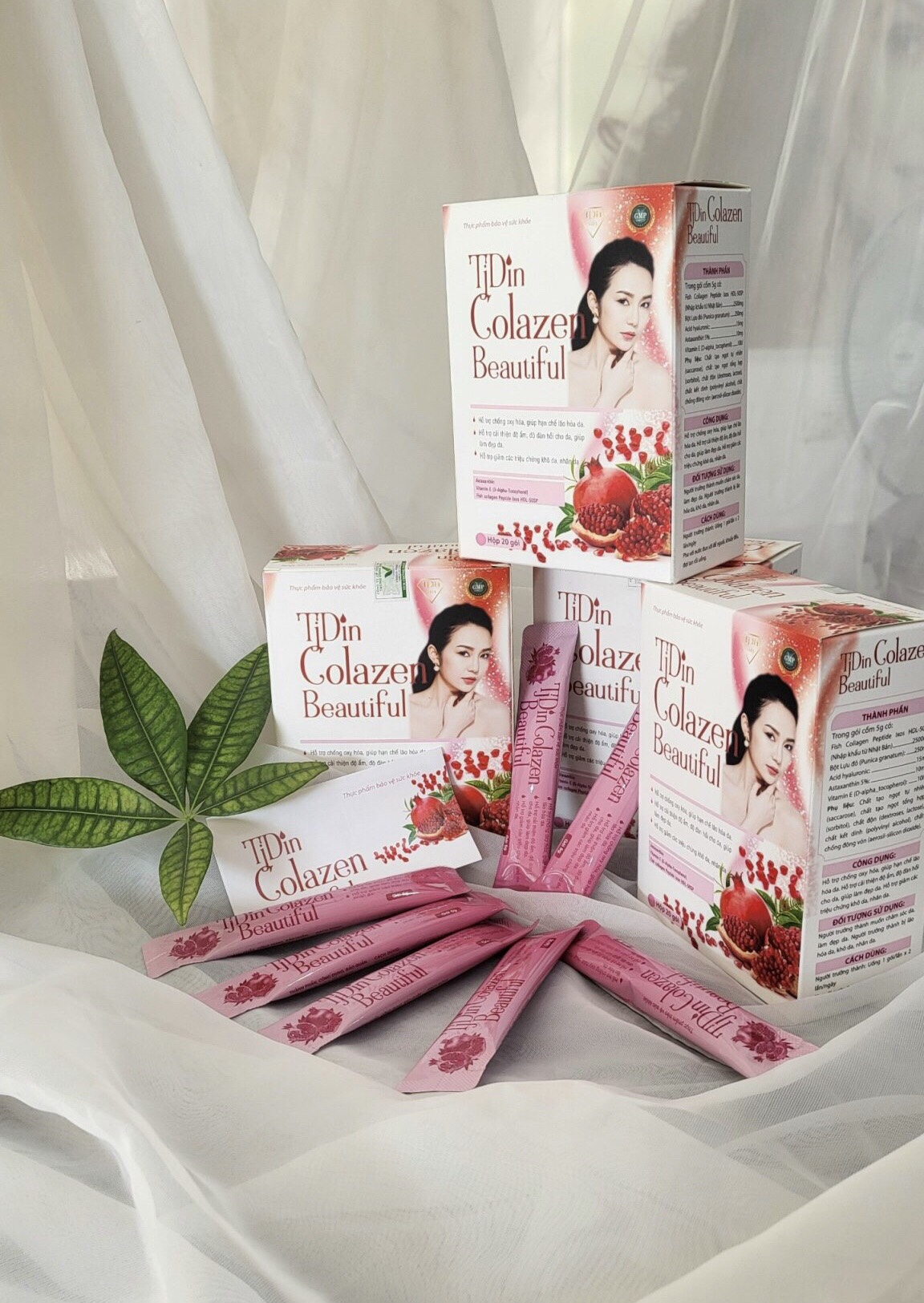 Mua tại TiktokGói uống Tjdin Colazen Beautiful là một sản phẩm bột uống tiện lợi và dễ uống thẩm thấu cho tác dụng nhanh với các thành phần astaxanthin 10%, collagen type1, nanocurcumin chiết xuất cỏ ngọt được sản xuất trên dây chuyền hiện đại đạt chuẩn GMP.