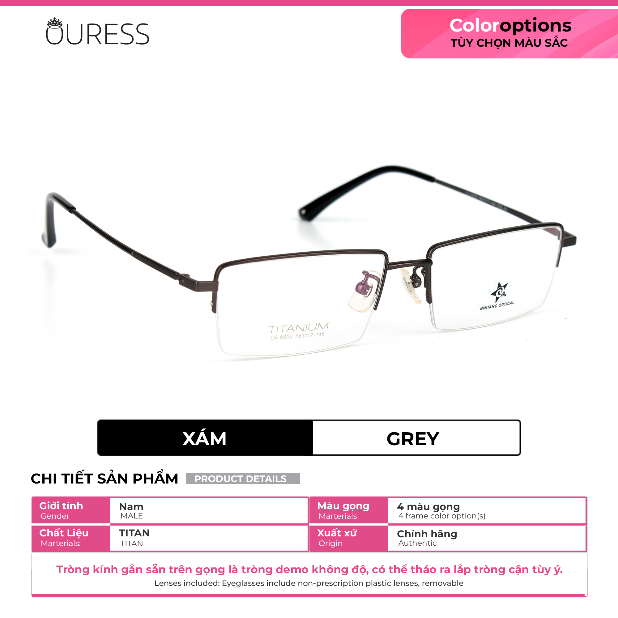 Lưu ý: Quý khách vui lòng cung cấp đầy đủ thông tin như trên cho Ouress trong vòng 02 ngày kể từ ngày đặt hàng. Hết thời hạn mà không nhận được thông tin, Ouress xin phép được gửi mặc định tròng 0 độ để đảm bảo quy định giao hàng của sàn.