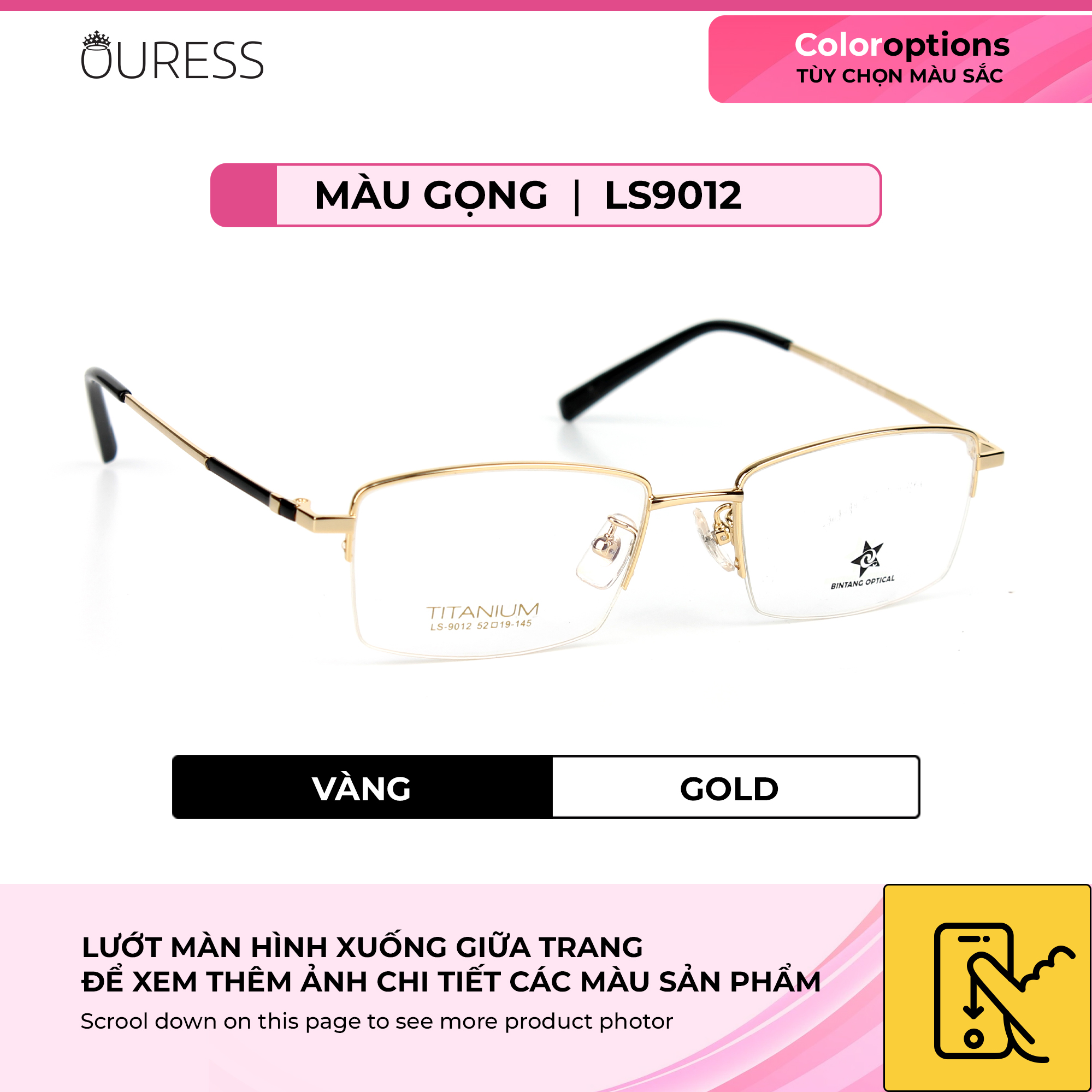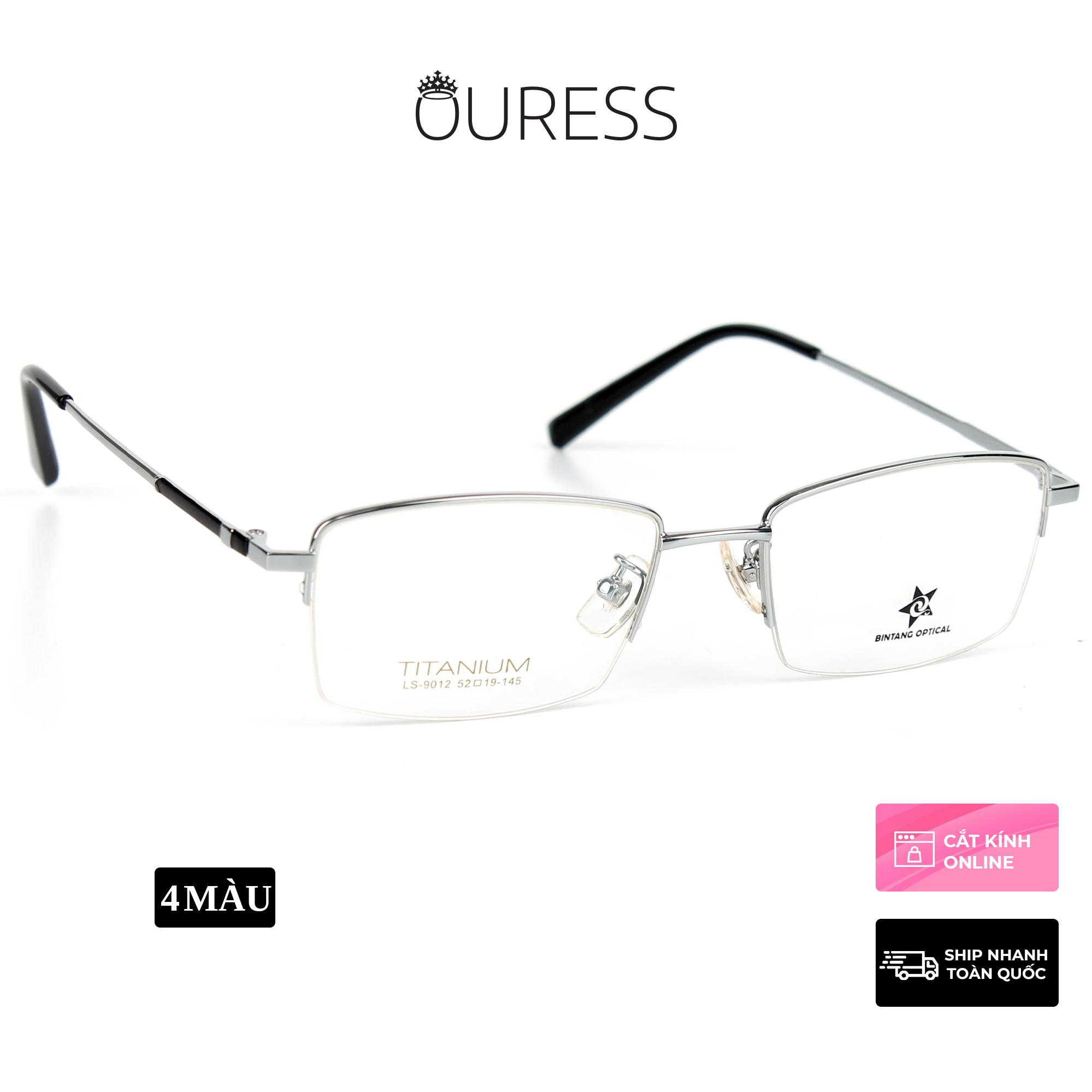 ✨Gọng kính titanium LS9012 nửa khung thời trang nam cao cấp siêu nhẹ siêu bền OURESS